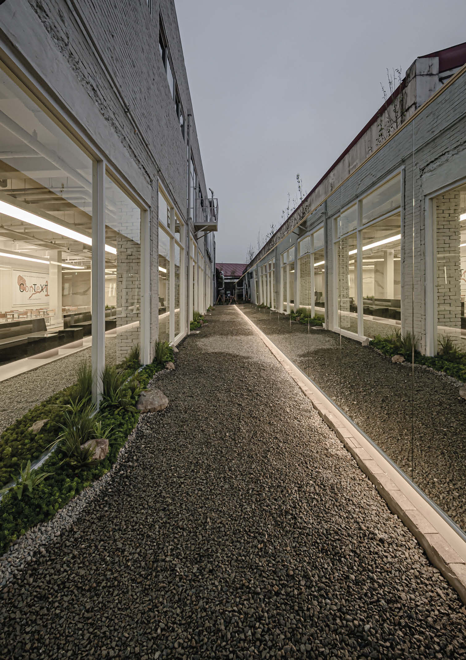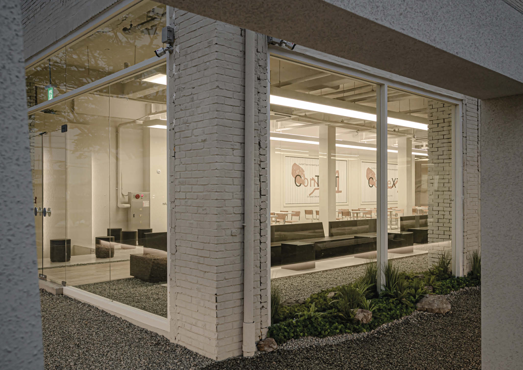 “CTXT” (Context) is a cafe and a restaurant. Since the space consists of two floors, the architect positioned the cafe on the first floor and a bar lounge on the second floor. When it comes to the overall spatial, the place features a simple structure that is straight and solid. It also has huge scalpels and rough textures that give visitors a strong impression. In contrast, the upper floor has a comfortable and soft atmosphere due to the colors used and slightly dark lighting.