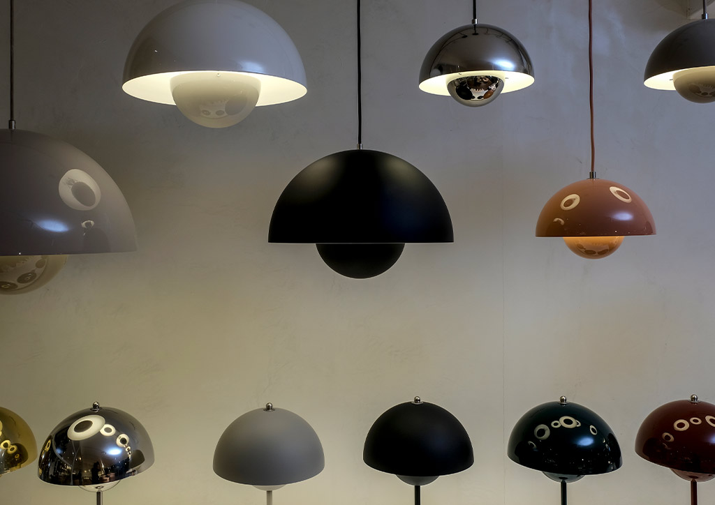 Bright, charming, and extremely chill – these come to mind when visiting the new showroom. Upon entering the ground floor hallway, you are immediately greeted with iconic Flowerpot pendant lights by Verner Panton, a warm welcome change for people who feel cooped from staying at home during the past year.