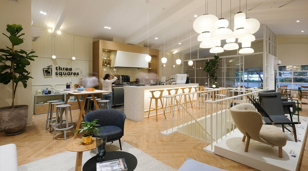 The new Design Story showroom invites you to experience the lush interiors and see for yourself if a style option could work for the space you might have in mind – all while enjoying comfort dishes and drinks from its brand-new cafe + bar concept called Three Squares.