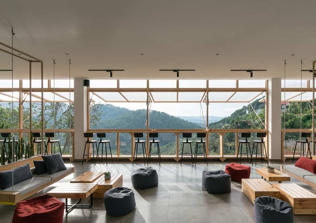 HHT Coffee (Duong May Xu Hoa Da Lat) sits on a scenic hillside three kilometers away from central Da Lat City in the Central Highlands region of Vietnam. As such, it’s easy to see why P.I Architects made sure to provide an unobstructed view of the valleys in their design. In fact, the first time they visited the site, they simply stood still and admired the landscape from the spot where the coffee shop would be built.