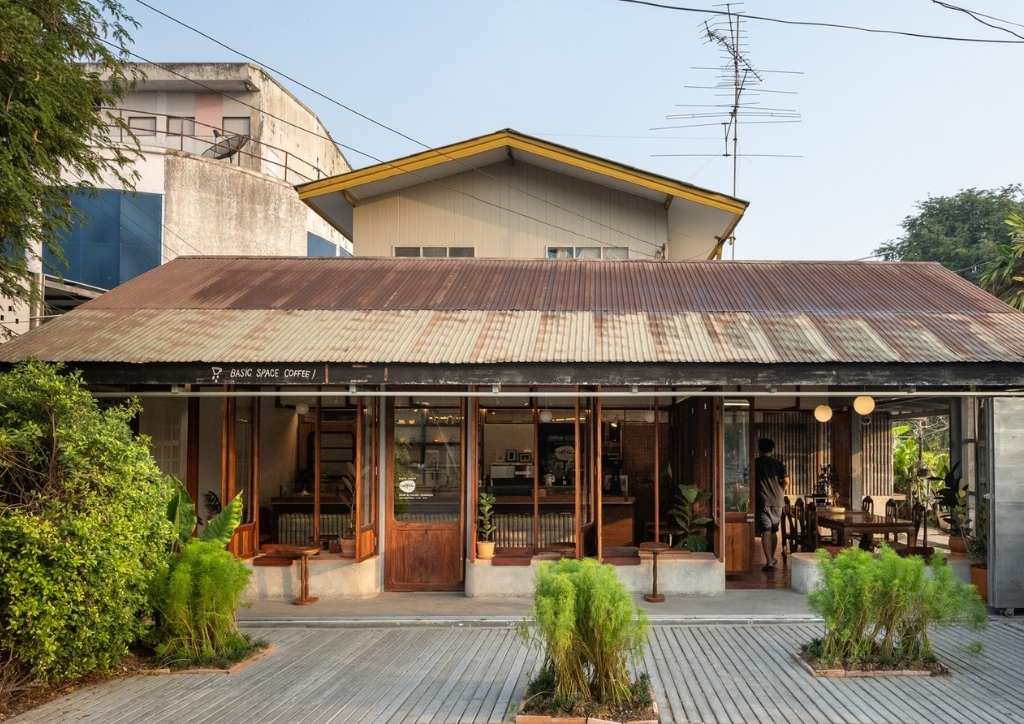 While it may seem nondescript at first, Basic Space Coffee in Ayutthaya showcases a beautiful mix of old and new. BodinChapa Architects drew inspiration from the cafe’s long history and reinterpreted its traditional use. Once a home, grocery store, and restaurant, the building’s past use have all contributed to its gradual expansion. As such, the designers wanted to keep as much of its history as possible while also meeting the needs of its current use as a quaint coffee shop.