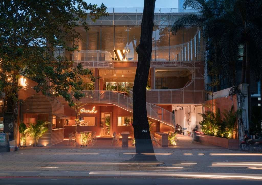 Located in the heart of Ho Chi Minh City, Anh Coffee Roastery is a new and spacious addition to Vietnam’s bustling coffee market. According Red5 Studio, “the scene of the basalt red land growing coffee on cloudy days” inspired their design. The feeling of being “immersed in that floating place” also became their primary material and inspiration for the project.