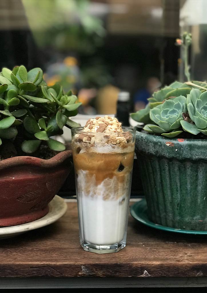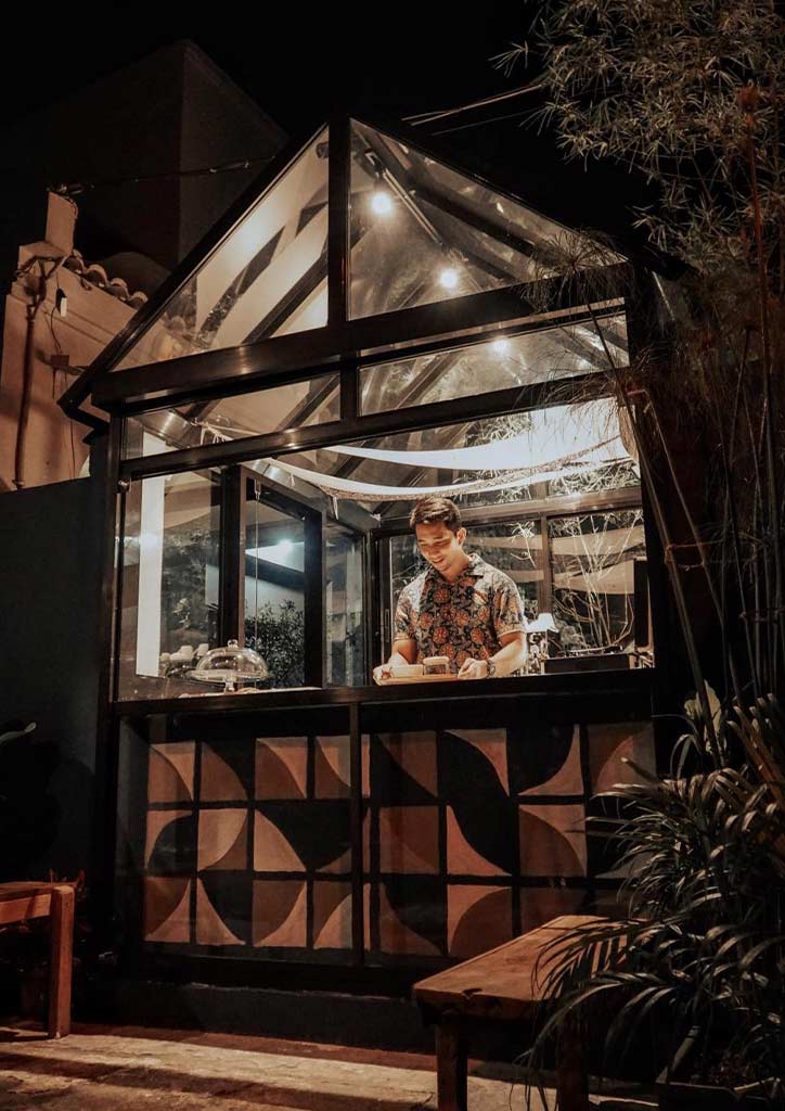 The brainchild of father and son duo Rex and Manu Reyes, Papakape is a cafe that ticks all the boxes for a quintessential micro coffee shop, starting with a unique name, exciting drinks, and a charming ambiance. Their coffee bar is situated under a tiny glasshouse. It has plenty of natural sunlight that floods its counter. It was Manu’s father that wanted a structure that will not block the view of the sky. The coffee bar and dining area by the small garden with blue walls and cactus plants will remind you of Majorelle Garden in Marrakech.