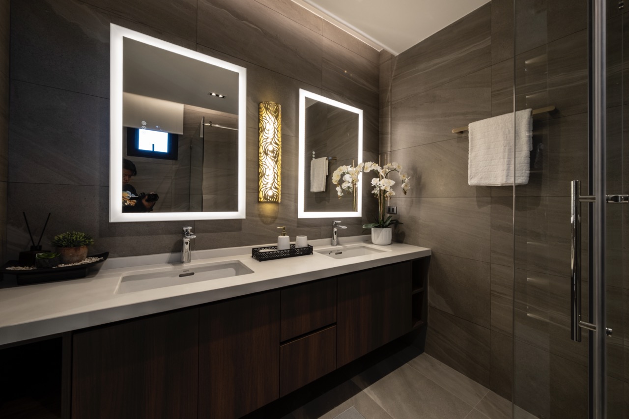 Start by bringing the outdoors in. A touch of strategically placed, low-light greenery can work wonders. Snake plants, ferns, Chinese evergreen, peace lily, and bromeliads are all excellent choices for bathrooms as they thrive in humid environments and require minimal sunlight. They also help remove household toxins, which improve air quality and doesn’t leave your bathroom smelling stale. Put them in stylish pots like ceramic or glazed terracotta to add texture and visual appeal.