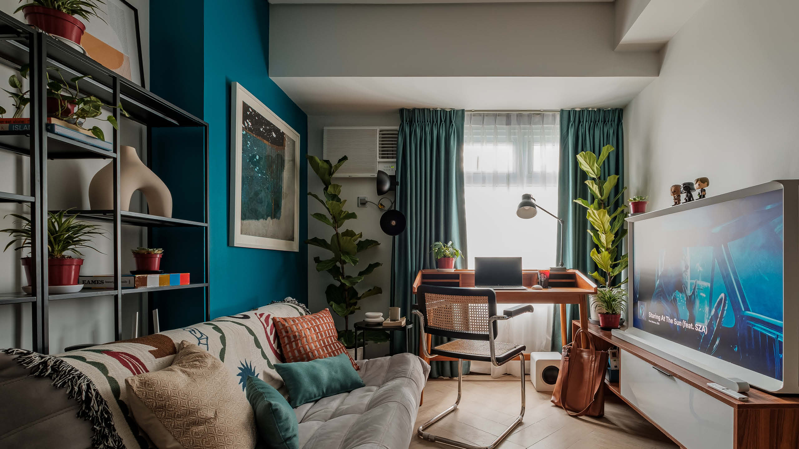 The team was honest that the direction of this project was a recess from their usual work. “Choosing the right color of blue was a challenge. When we finished the overall styling of the place, it felt unreal. Parang hindi namin gawa”. The client wanted popping colors that would make the space more vibrant by pairing it with wood flooring and modern items such as a console.