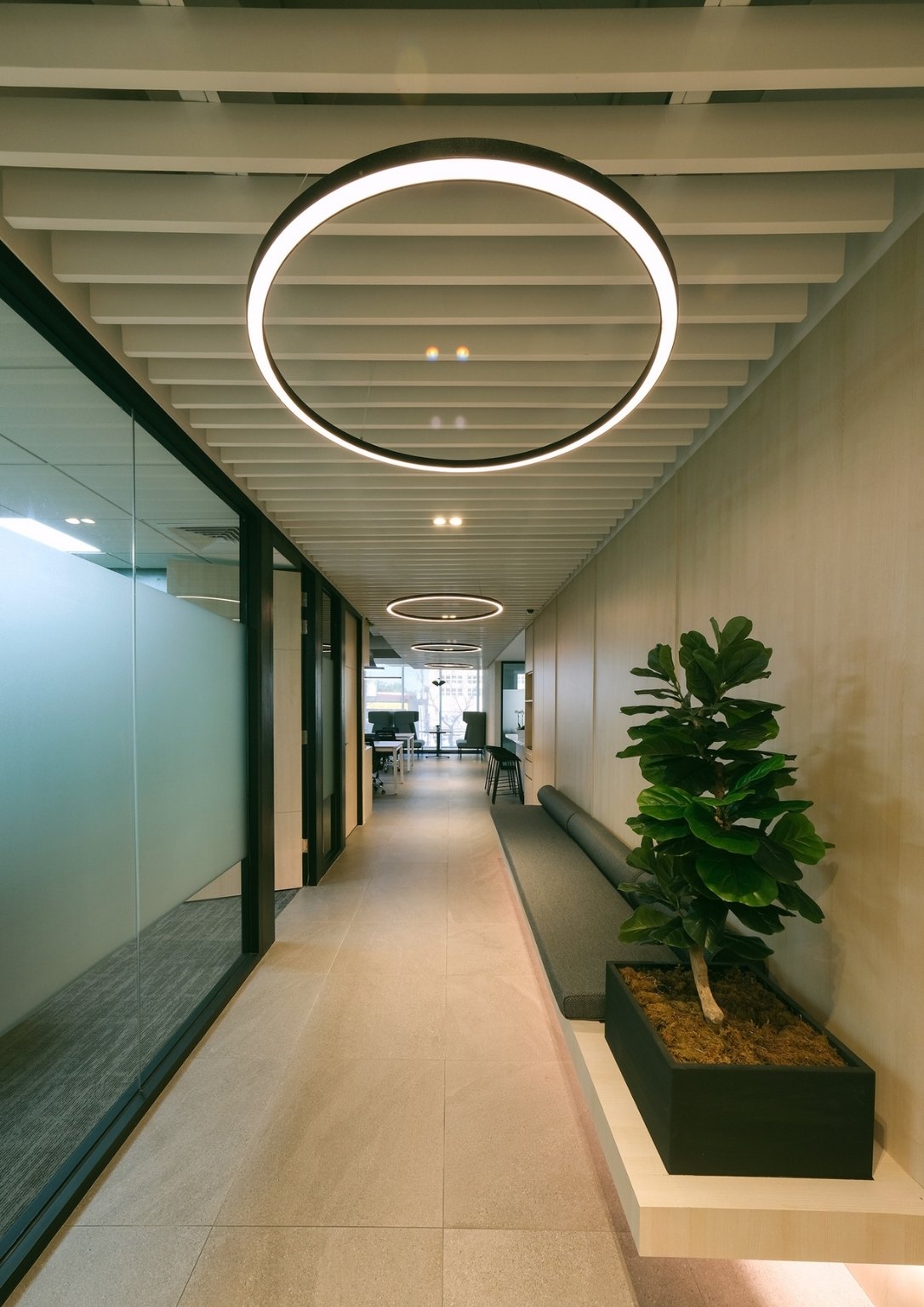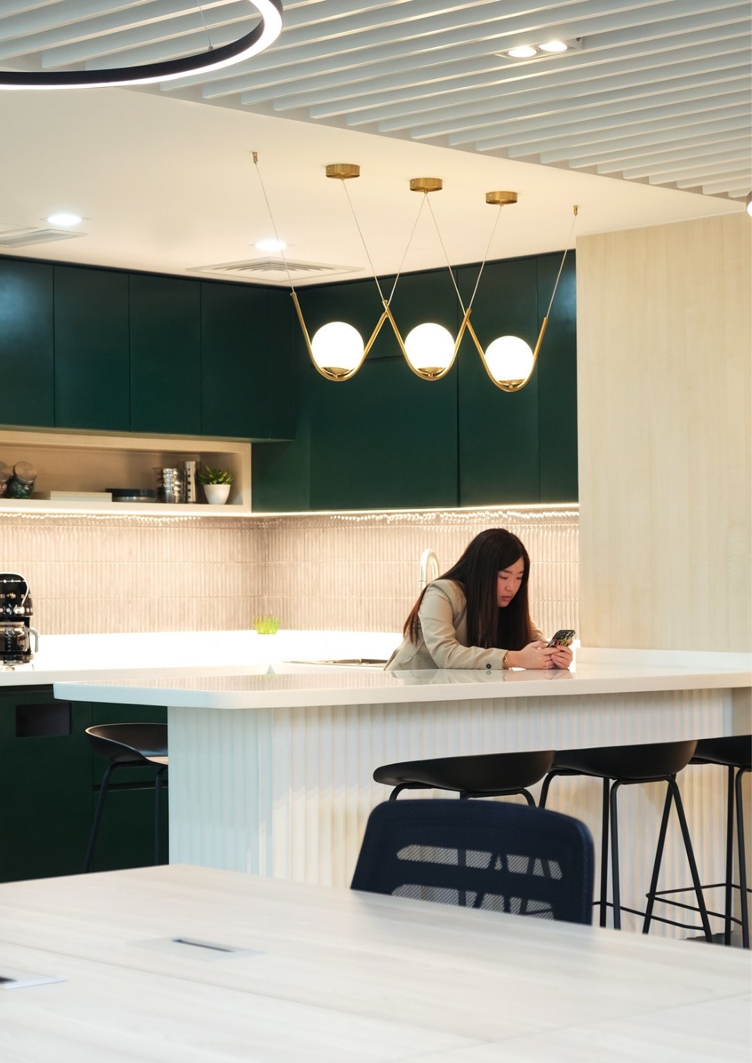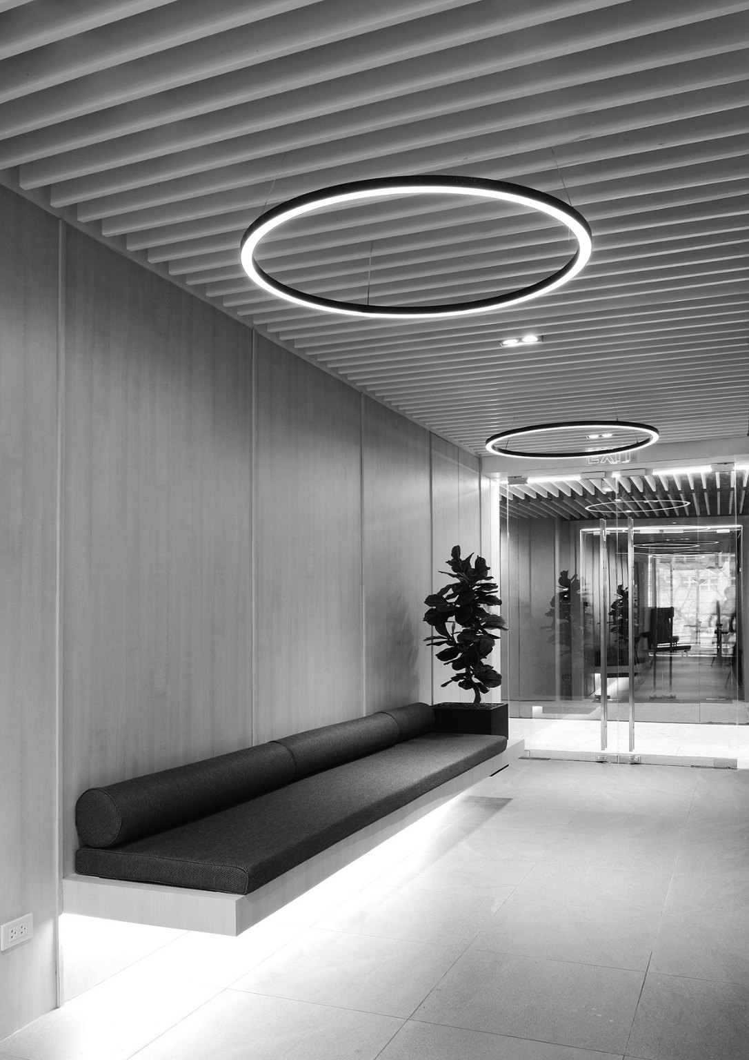 As with its home building, the project features features linear lines and low-key, neutral tones to make the interiors more calming to the eyes. According to Coleen, they also added dark green accents to create a sense of a healthy and professional workspace.