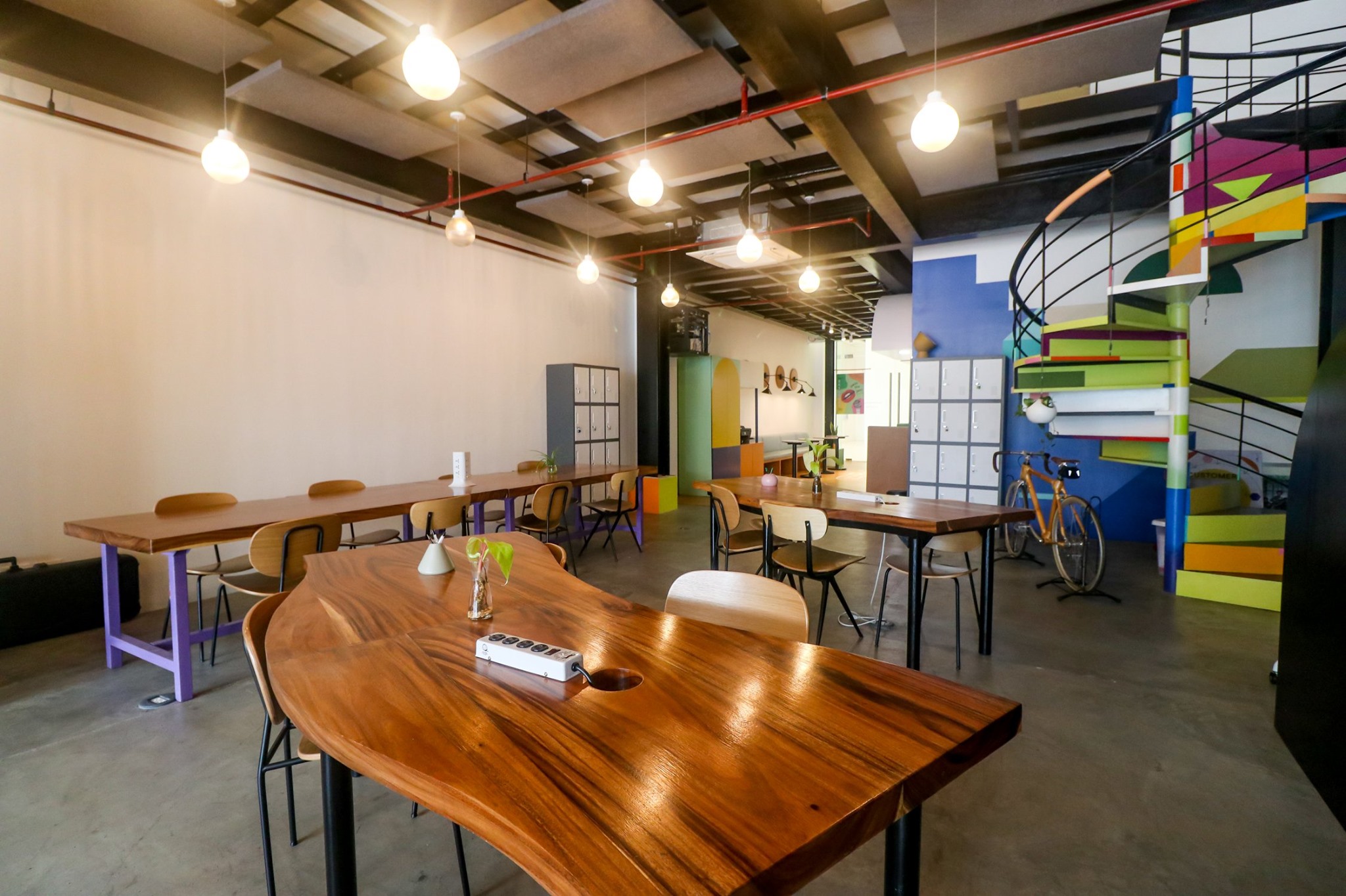 Located in Albang’s bustling CBD, Nook Coworking Studio is a dynamic place with an eclectic design highlighted by welcoming and energetic colors. Combining work and play, this space offers facilities like meeting rooms and even a photo studio.