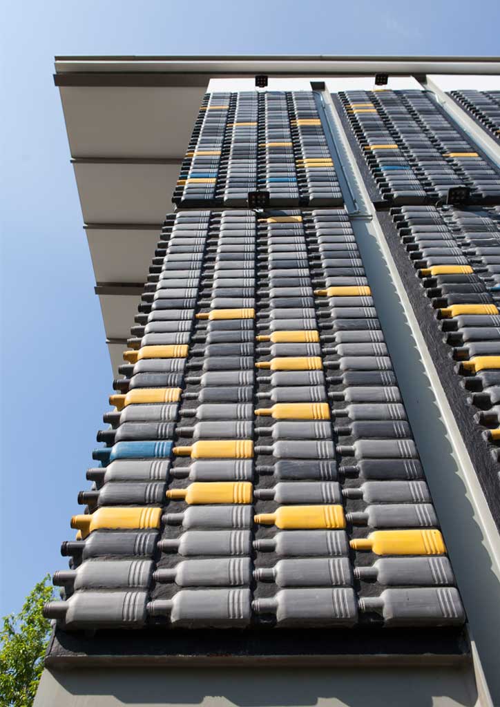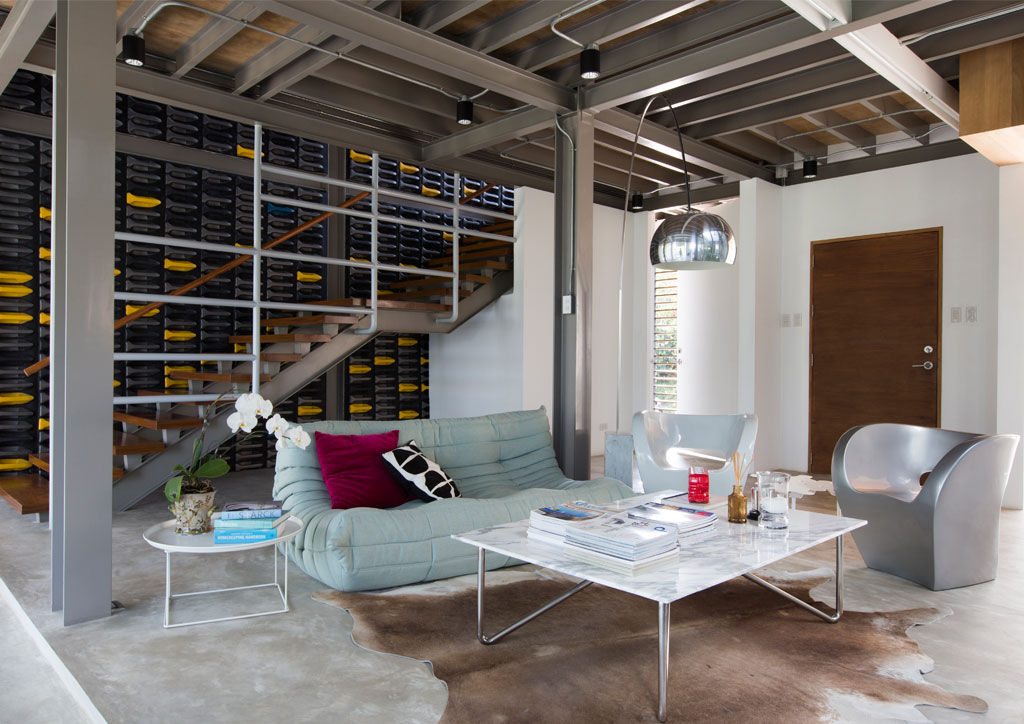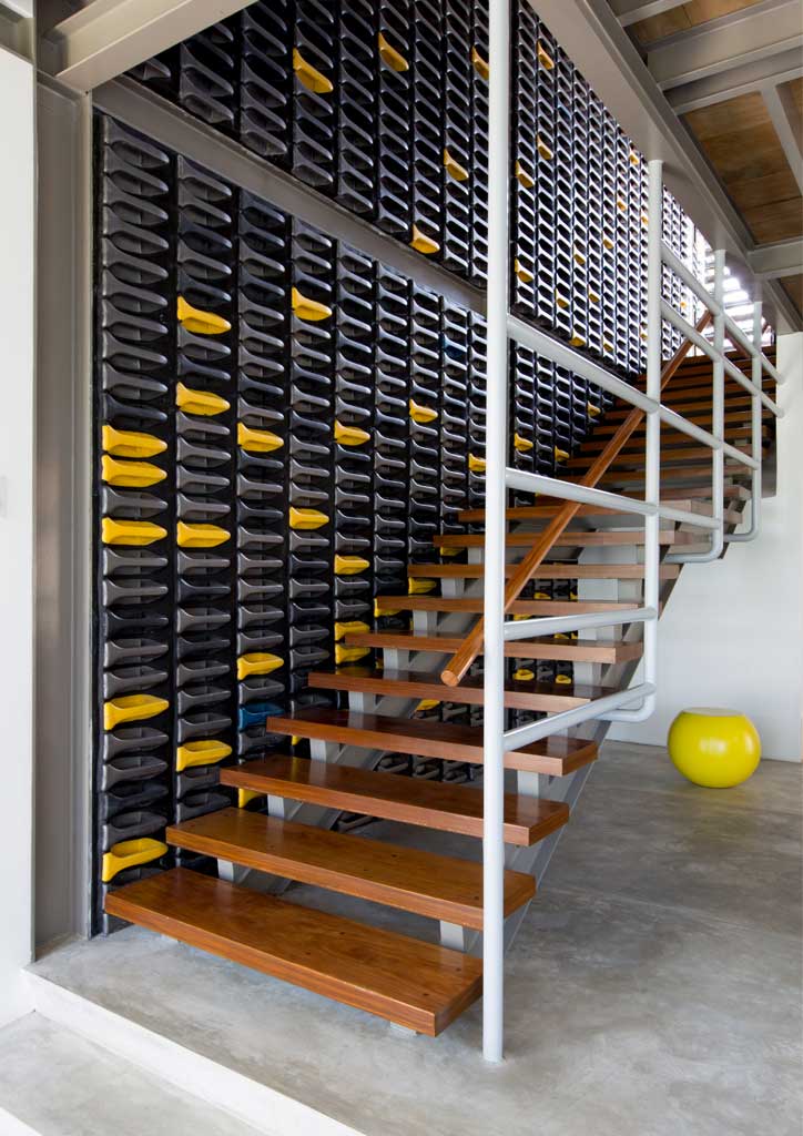 The Shell container wall figures prominently in the interior of the house. When the kids were smaller, they instinctively used the handles of the plastic containers as grab bars when using the stairs. Fortunately, they sensibly listened to their parents and have not used the stacks of containers as a climbing wall.