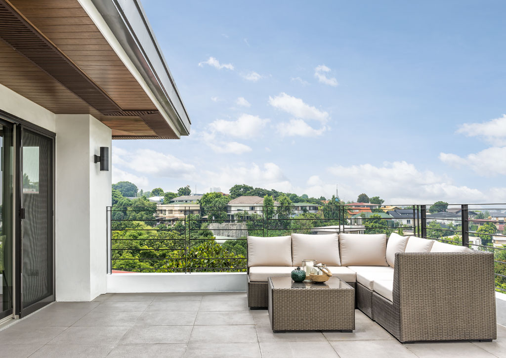 The neutral palette Carol chose culminates in the roof deck with its beige walls and a grand views of trees and sky. The wife had originally been averse to having a third floor as she couldn’t picture how a roof deck would be utilized in a tropical environment. However, she now considers it one of her favorite spaces after throwing some parties with friends and chancing upon a nice view of the moon over the Eastwood skyline.