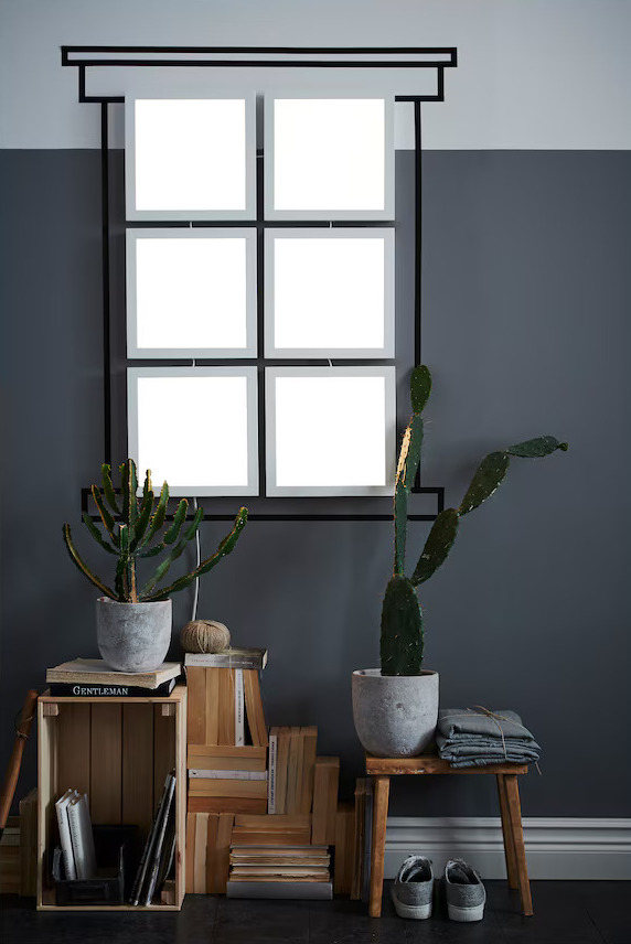 Lastly, would you believe that this is not a window but rather a collection of dimmable LED light panels? Square and rectangular options are available in different dimensions, and if you cleverly stack them together, they can form faux windows. This trompe-l’œil idea is particularly ideal for enclosed spaces that don’t receive enough natural light.