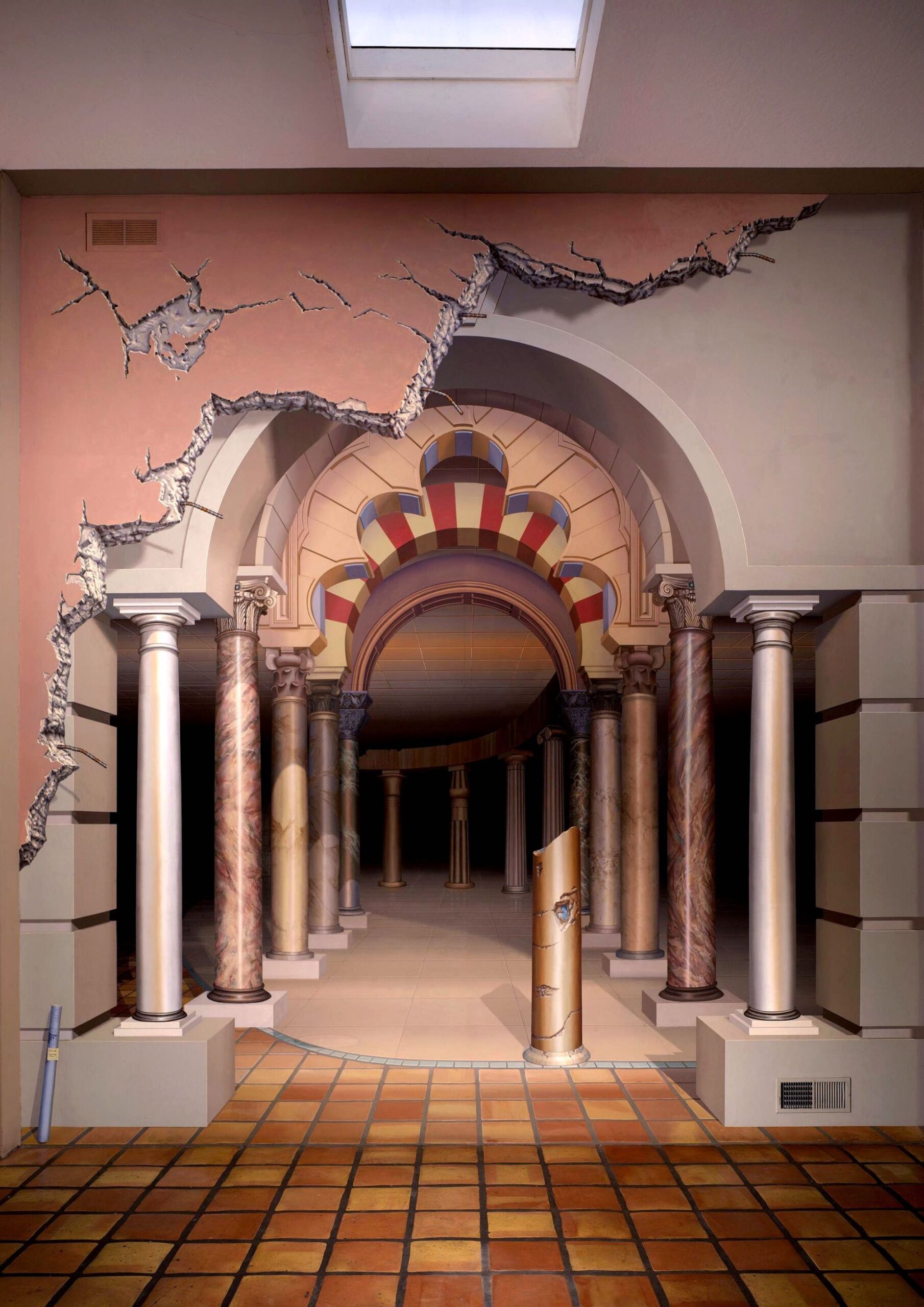 Perspective is the bedrock of any artistic representation and understanding. For architecture and interior design, this communicates the purpose of every design choice to convey a certain experience for users. Trompe-l’œil, as the masterful manipulation of perspective, is a prime example of this principle in action. It’s an ancient technique that alters the space’s perceived dimensions through skillful painting of realistic two-dimensional designs on surfaces and objects. And with continuous design innovations, trompe-l’œil has evolved in different forms to further create highly illusionary, mind-boggling, and immersive spaces.