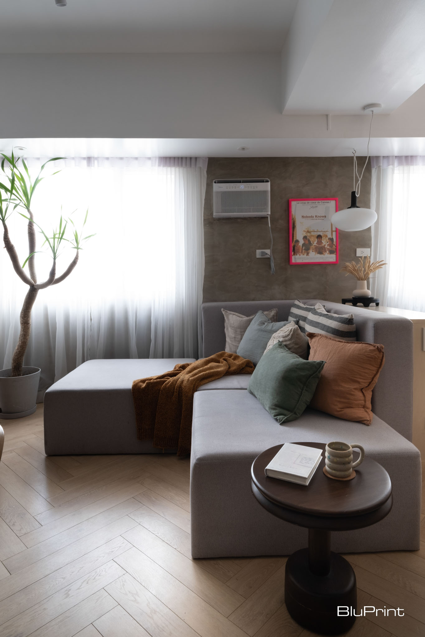 Upon entering, the arch full-length mirror in the dining area instantly creates a sense of spaciousness. Calvento easily hosts guests with an L-shaped couch and a four-seater dining table that accommodate visitors comfortably.