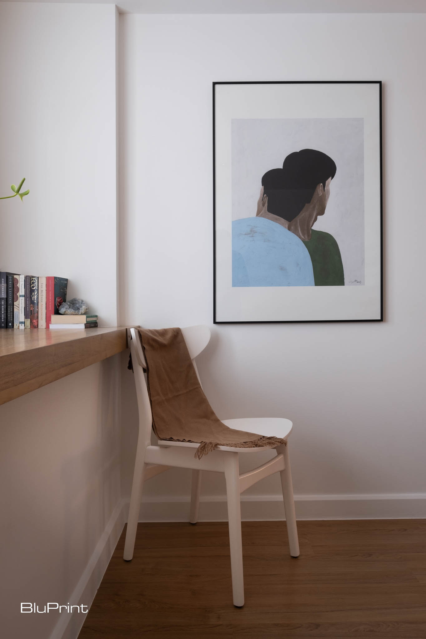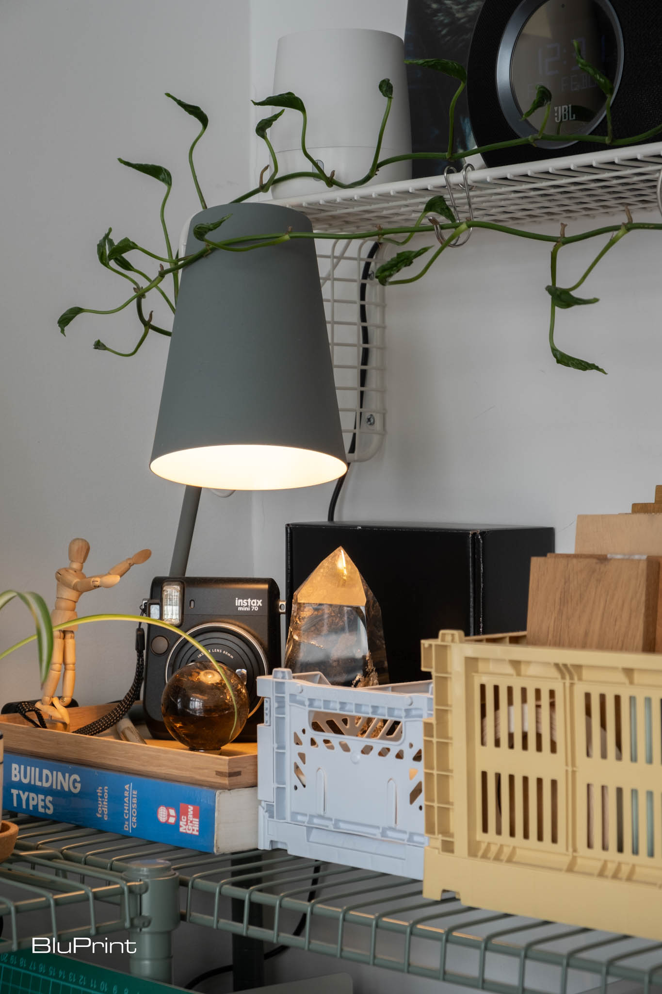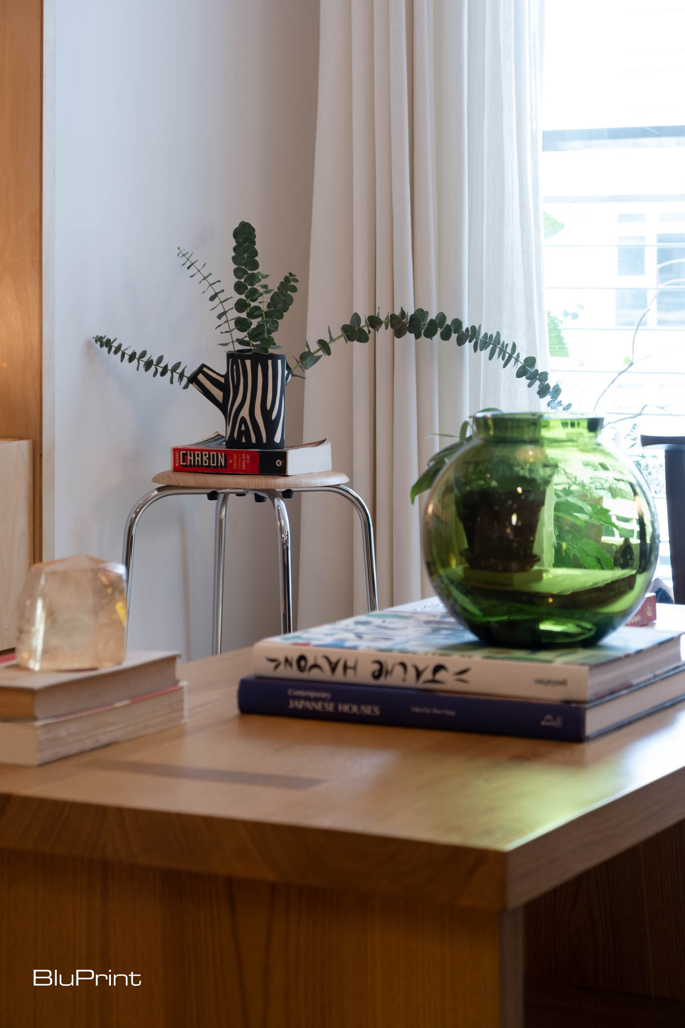 One of the two bedrooms serves as a shared home office, a space where creativity and functionality blend seamlessly. They stacked their personal art alongside work materials, with plants and various accessories layered throughout. This mix deliberately avoids separating design from daily life. The goal is to live and work within the designs, weaving creativity into their routines. In keeping with Auris Design’s philosophy, it avoids strict lines and rules, allowing things to fall naturally into place. And this approach to creativity extends throughout the entire house.