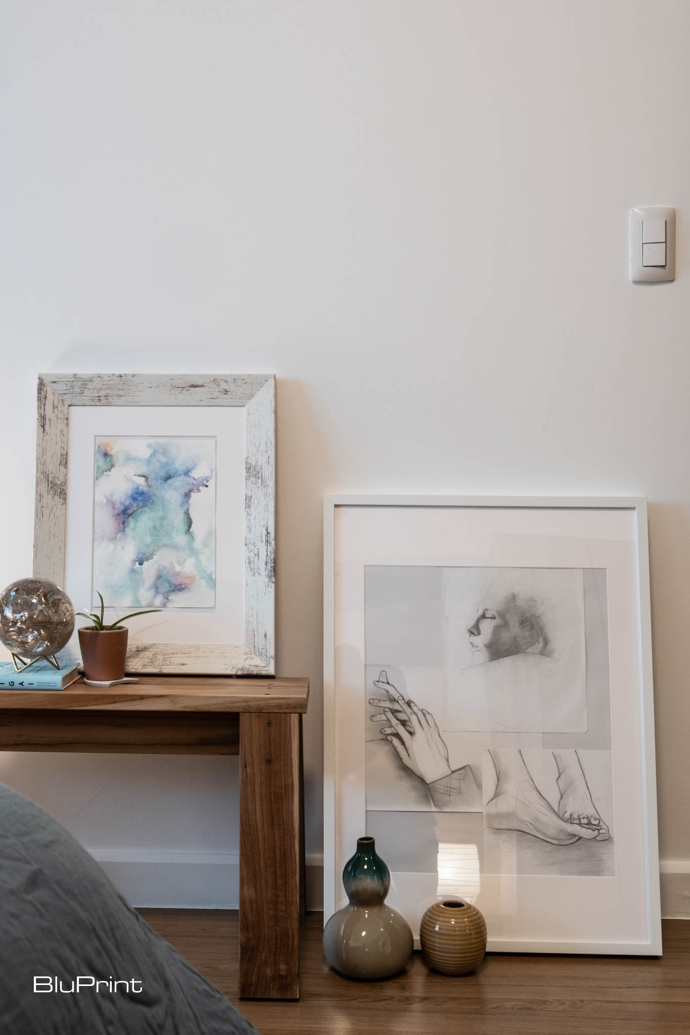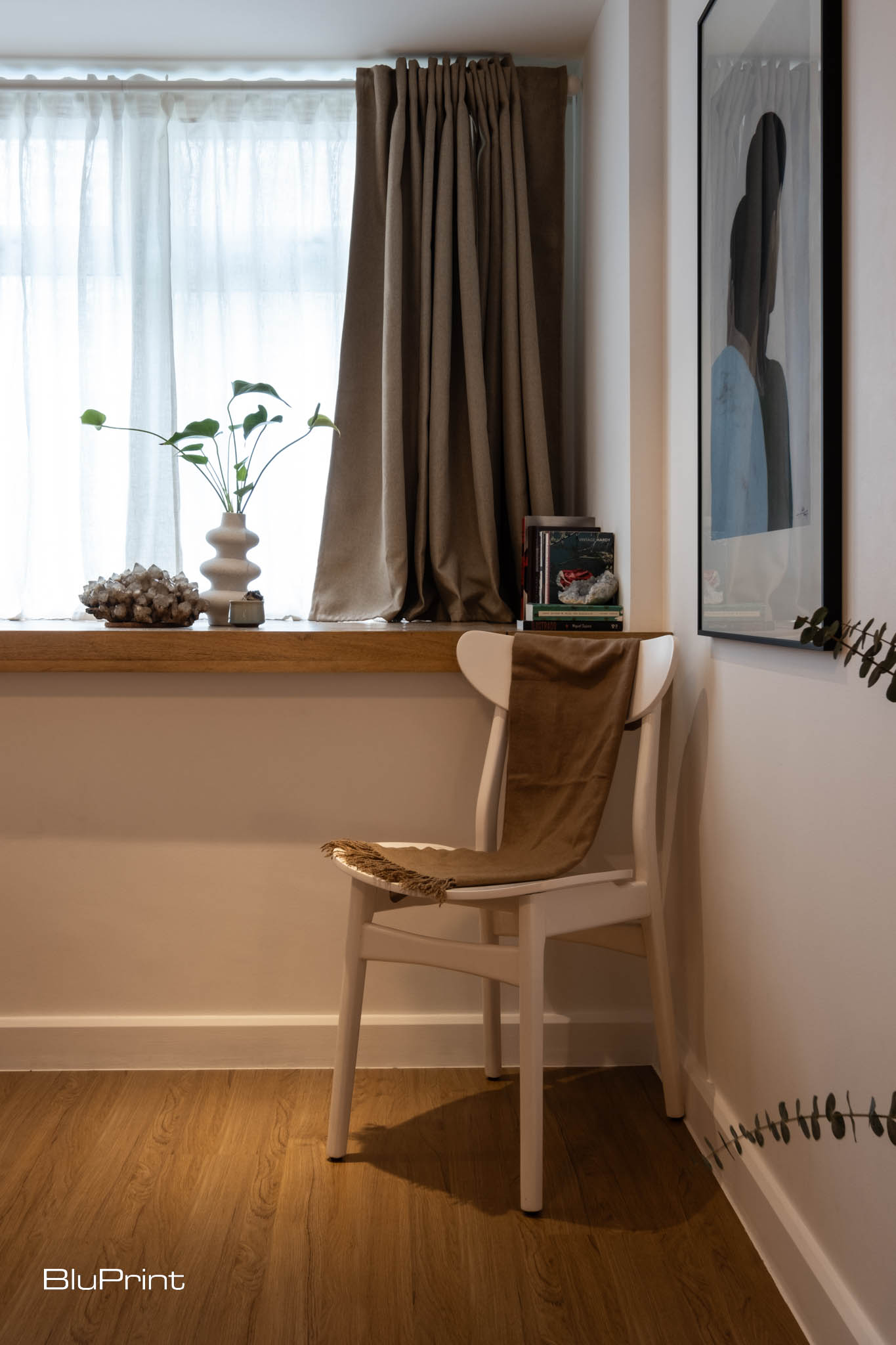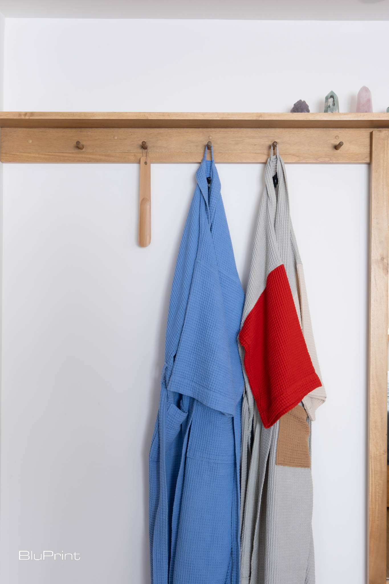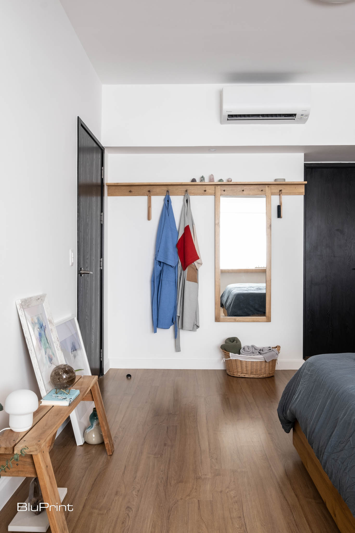 One of the two bedrooms serves as a shared home office, a space where creativity and functionality blend seamlessly. They stacked their personal art alongside work materials, with plants and various accessories layered throughout. This mix deliberately avoids separating design from daily life. The goal is to live and work within the designs, weaving creativity into their routines. In keeping with Auris Design’s philosophy, it avoids strict lines and rules, allowing things to fall naturally into place. And this approach to creativity extends throughout the entire house.