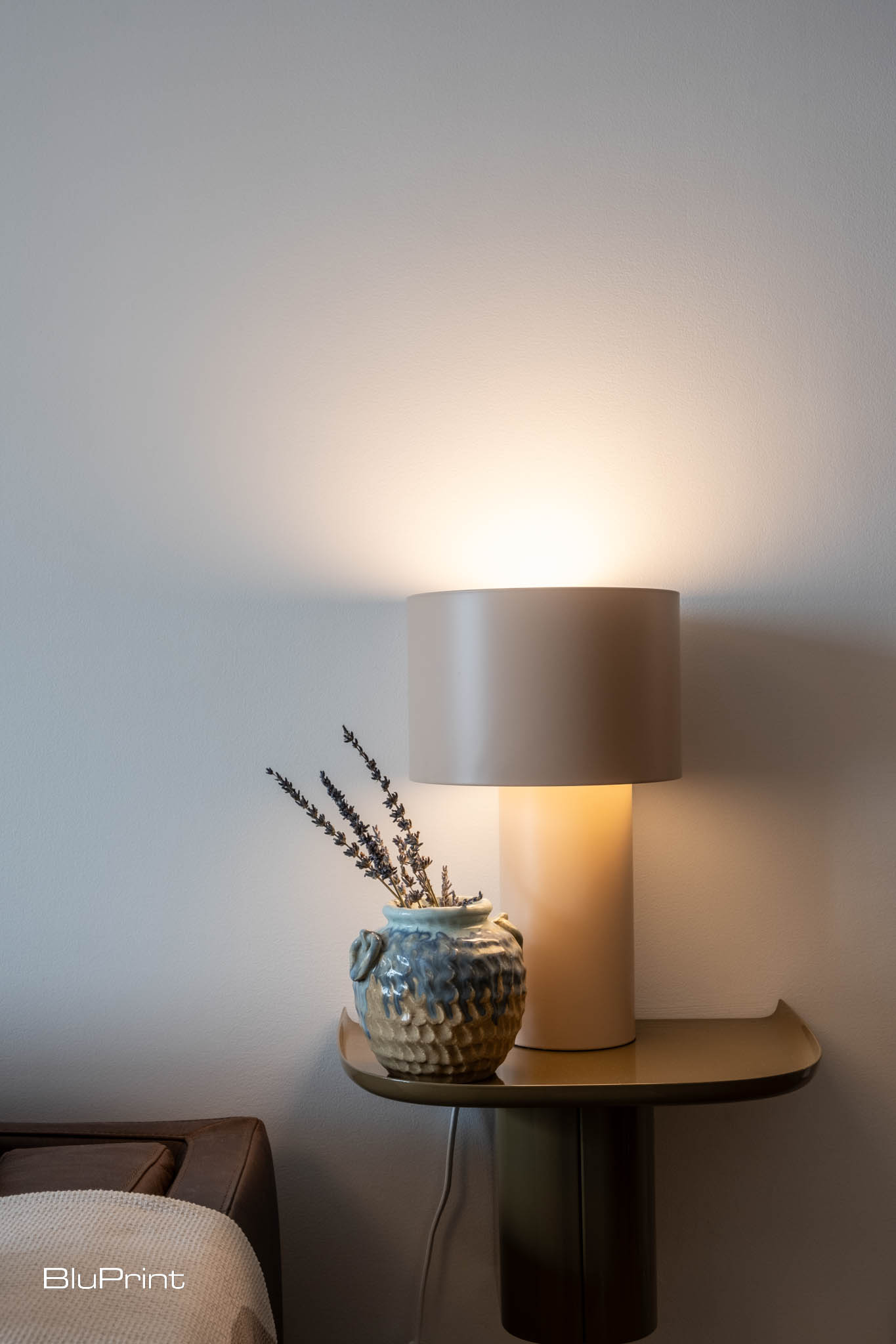 Throughout their home, Jody and Russell eschewed typical recessed ceiling lights. Instead, they favor various lamps and lighting fixtures, creating pools of light that add depth and character to each room. Every corner of their apartment tells a story, adorned with their favorite things: plants, crystals, art, and designer pieces that bring joy and reflect their unique tastes.