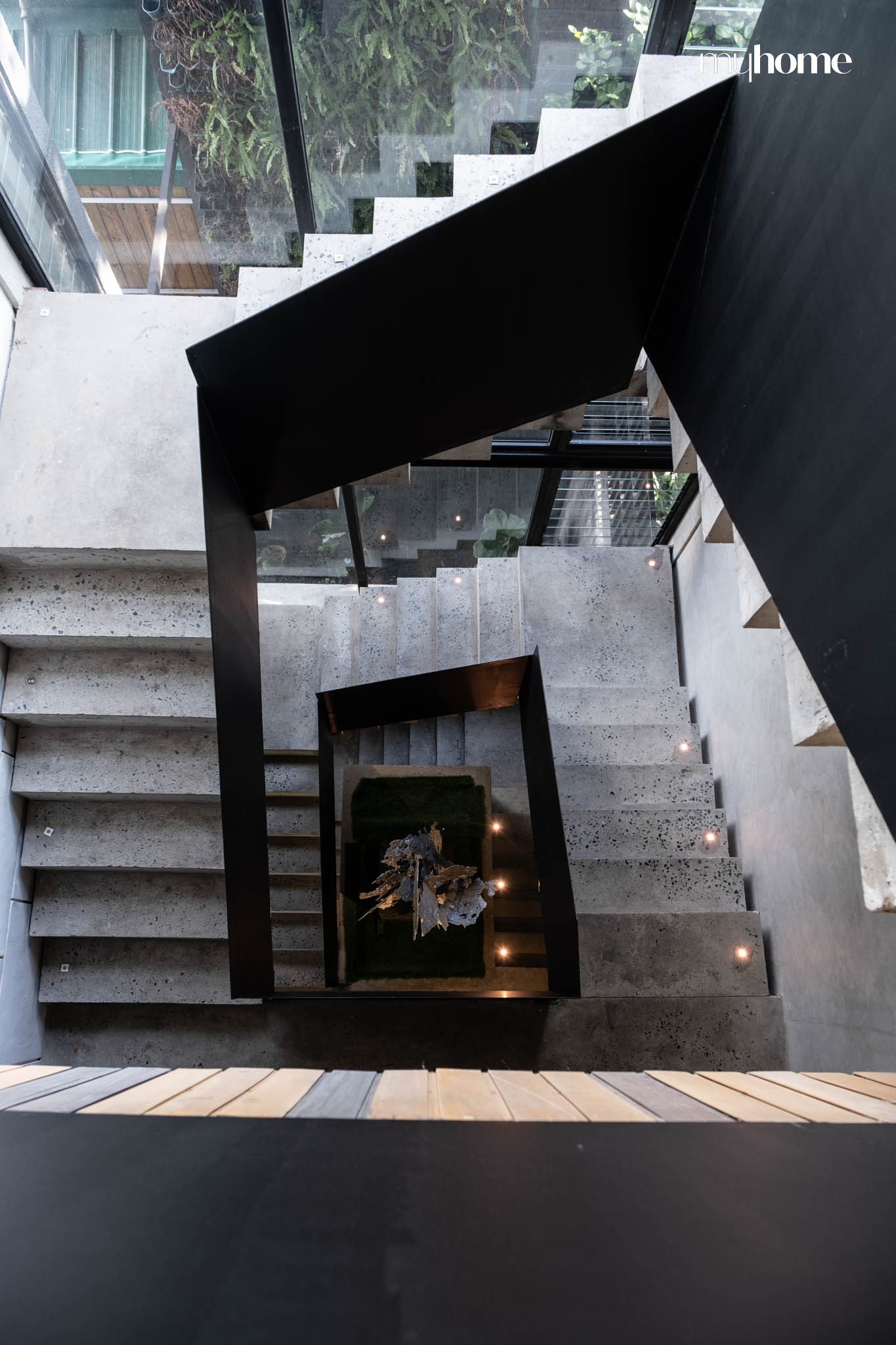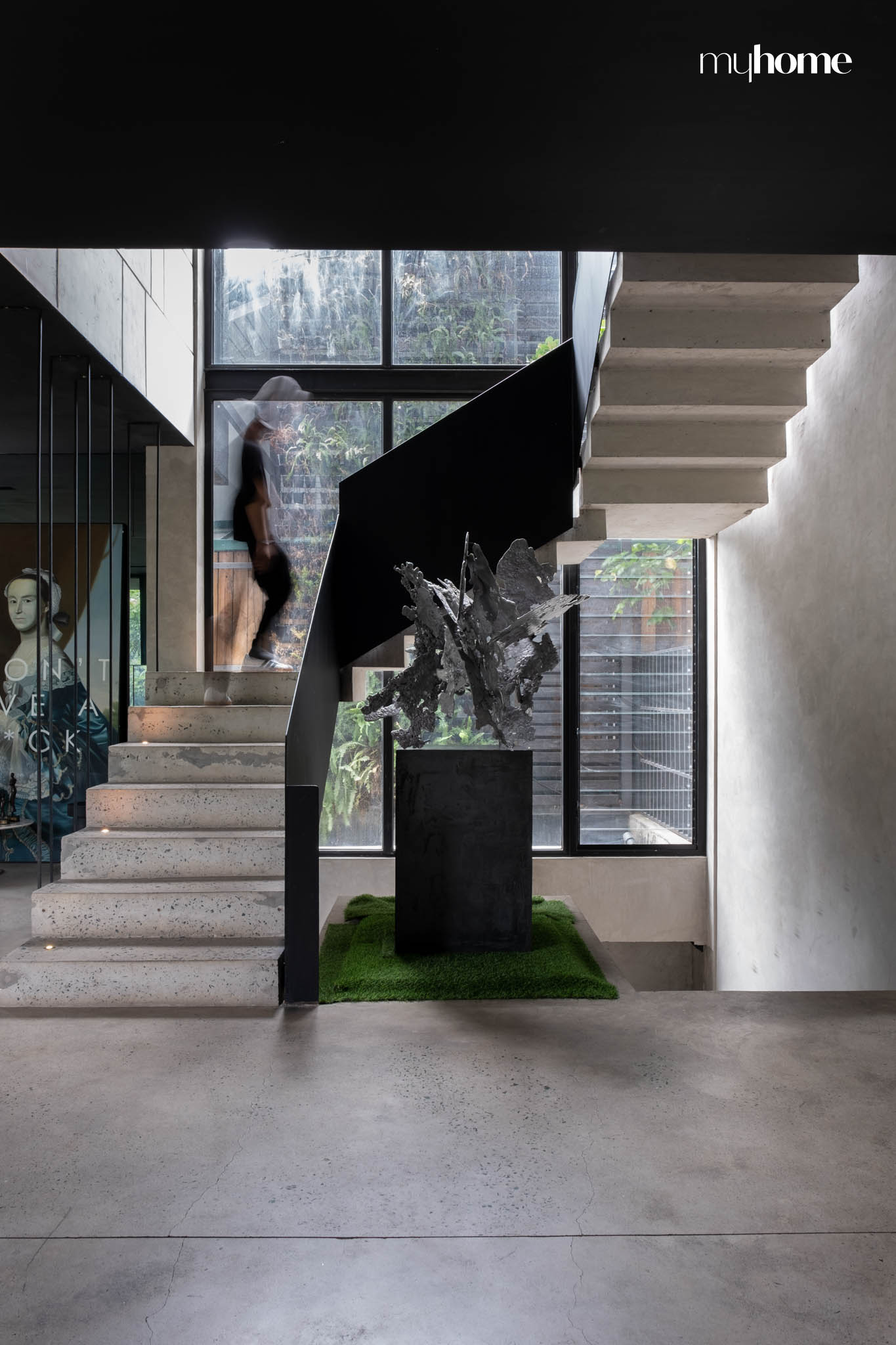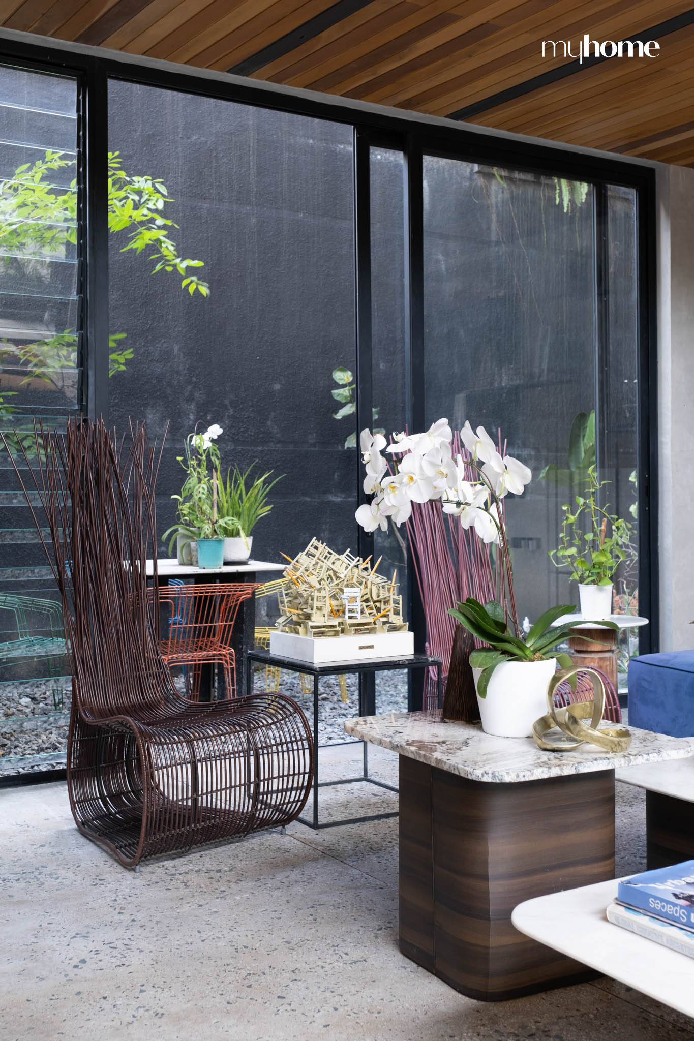 Despite its brutalist-inspired design—characterized by the dominant use of concrete, steel, and hard materials—the house exudes warmth. This warmth isn’t just about the space itself but also the memories that fill it. The house may seem modern and masculine because of the materials and color palette, but it’s the people inside that give it life. “We’re a big family, and our gatherings here are always full of energy,” Michael shares.