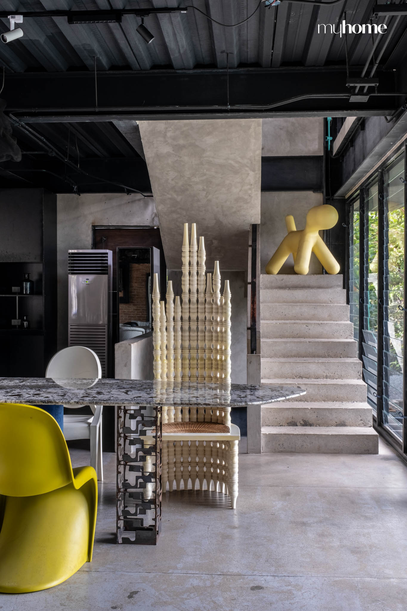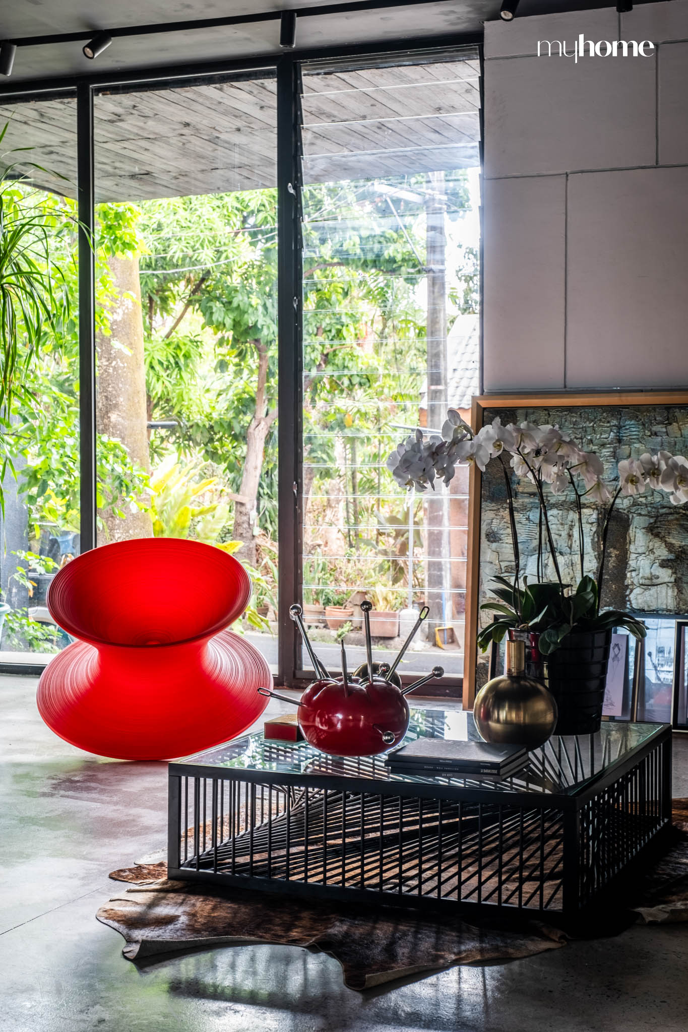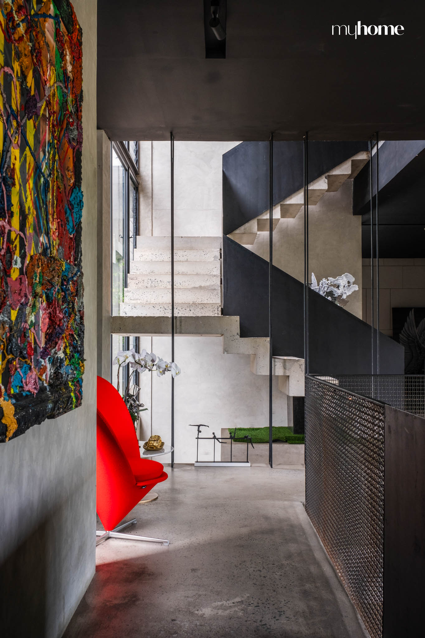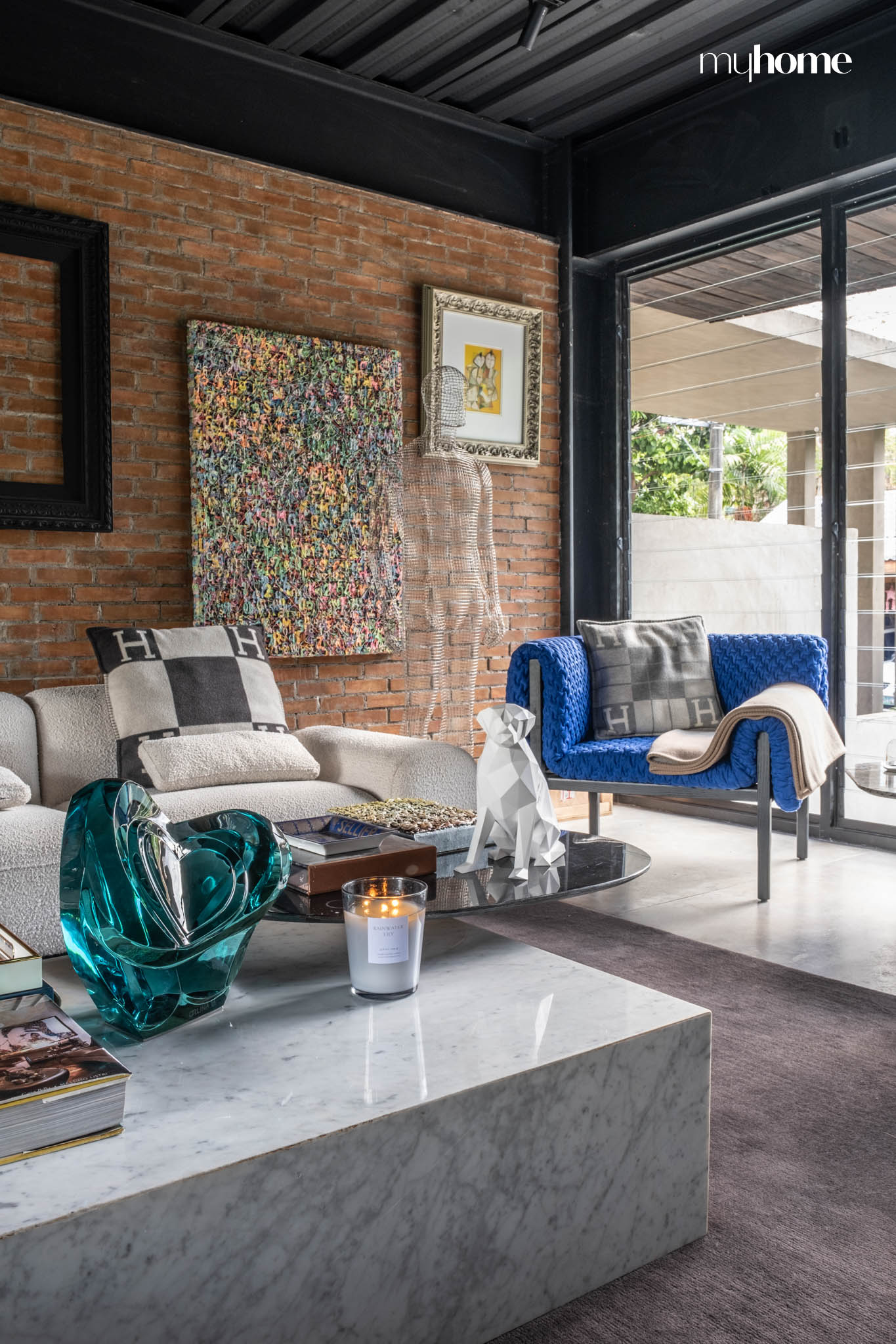 Despite its brutalist-inspired design—characterized by the dominant use of concrete, steel, and hard materials—the house exudes warmth. This warmth isn’t just about the space itself but also the memories that fill it. The house may seem modern and masculine because of the materials and color palette, but it’s the people inside that give it life. “We’re a big family, and our gatherings here are always full of energy,” Michael shares.