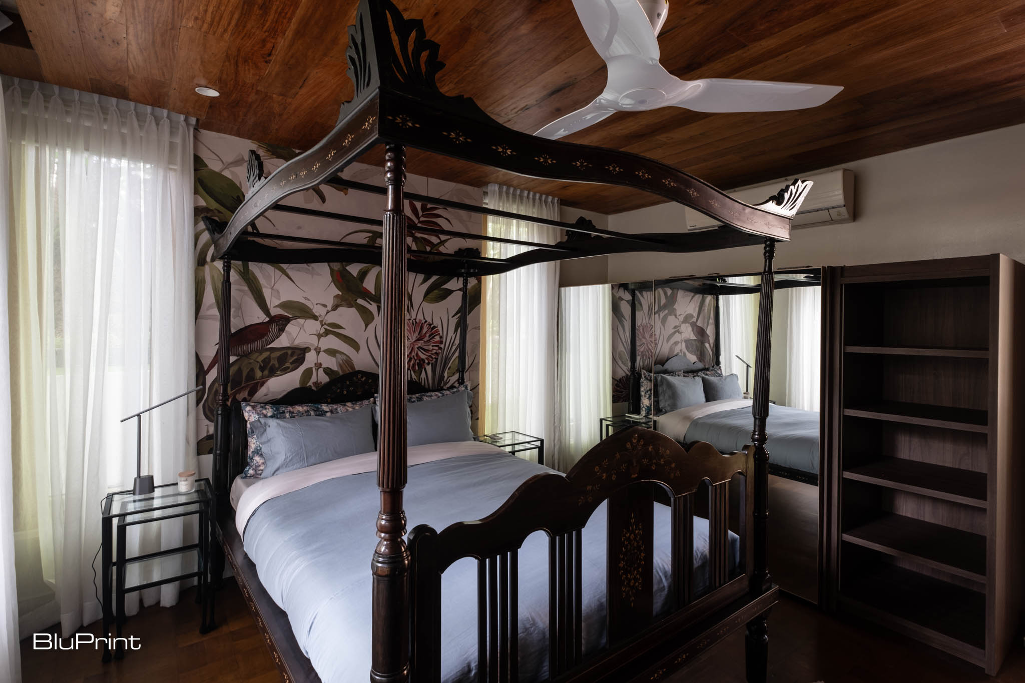 “We had to switch from darker tones to lighter blonde wood because the pieces were visually heavy,” Nazareno explains. This decision helped offset the weight of the antique furniture and tie it with the lighter, airier feel of the overall design.