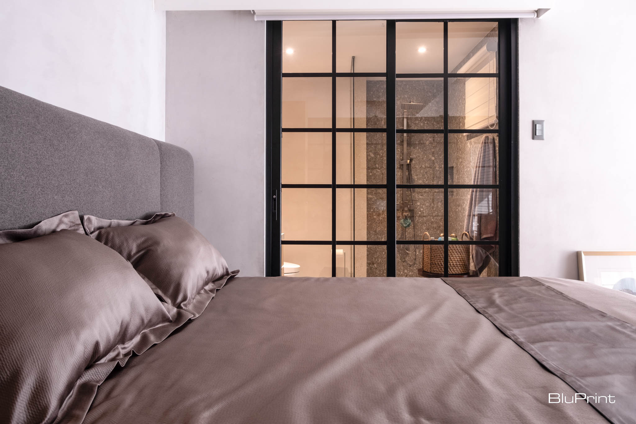 The bathroom is on the left side of the bed while the right side occupies the closet and vanity area. Ravelas even achieved a more seamless interior design by keeping glass doors as partitions for these private rooms.