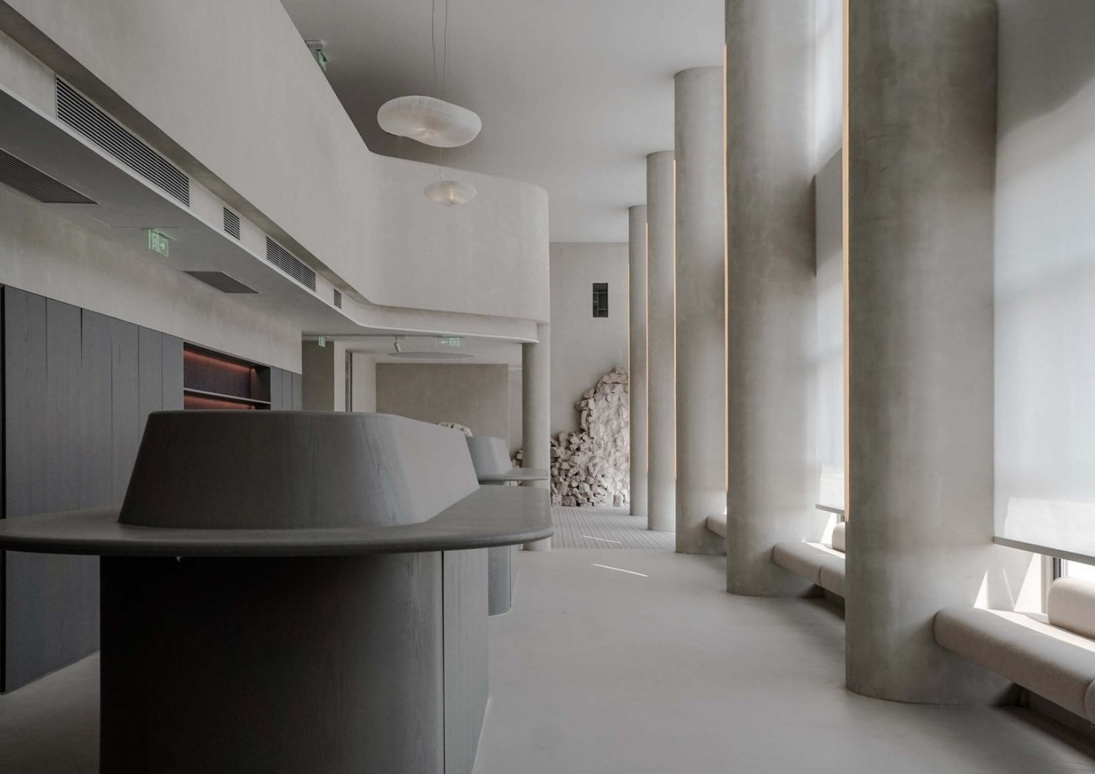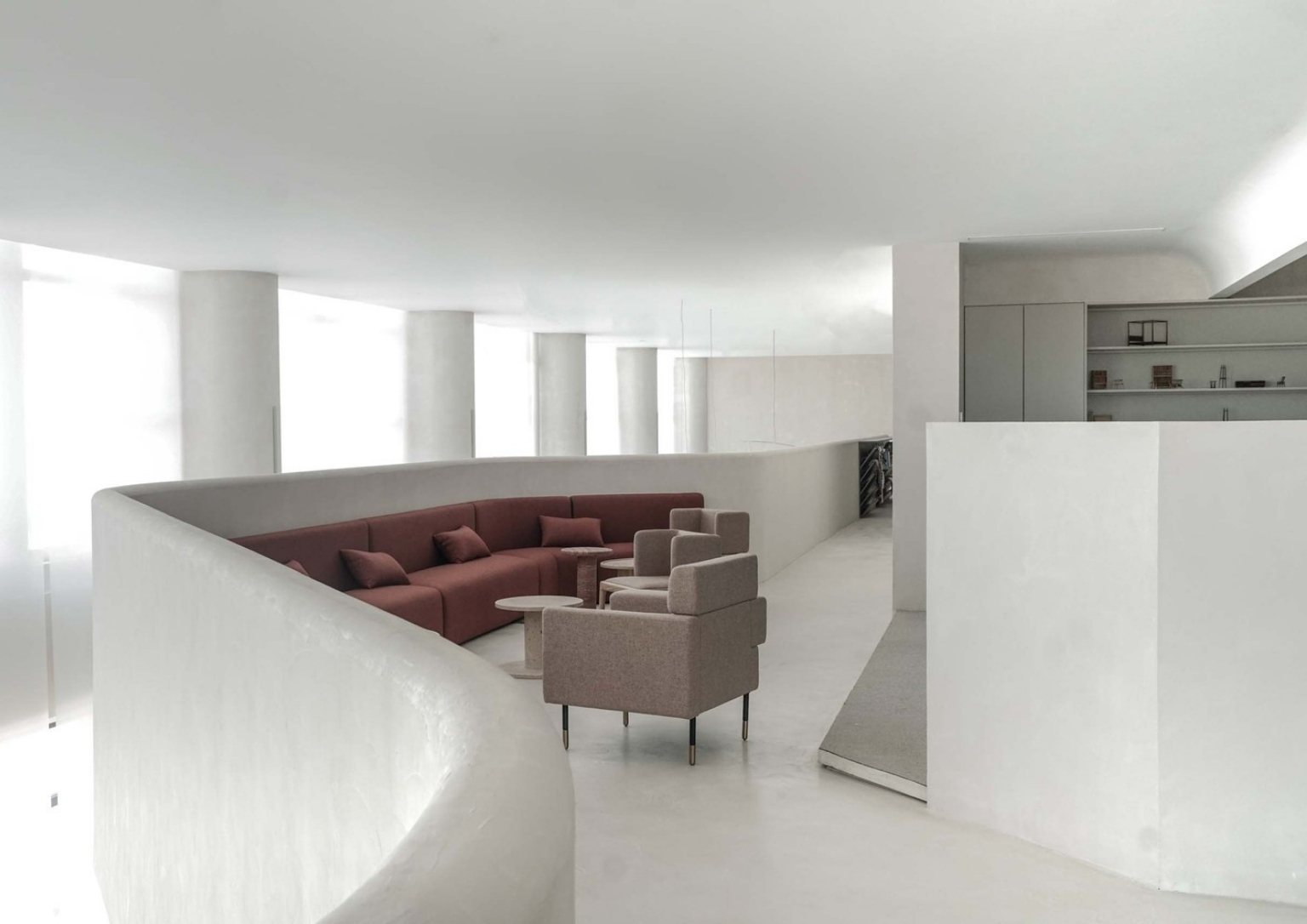Designer Xiaoxi Xiong creates FNJI’s new office in Beijing, China. The furniture brand’s new headquarters has a cozied-up futuristic interior inspired by a sci-fi movie. The 1000 square meter office space features a color scheme of soft gray that exudes a futuristic vibe, complemented by plaster walls and rounded elements. The result of the successful collaboration between lead designer Xiong and the FNJI design team is a well-curated built environment that aims to transform the way people work.