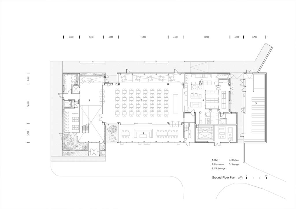 As a visitor center, the architects envisioned a dynamic structure where visitors can both enjoy the outdoor and indoor spaces and can easily access both areas, one is being nearby a playground area. The main entrance exhibits a double-height open ceiling hall with skylights under the louvers for that maximum natural light. Also present is the minimalist polished concrete stairs with timber handrail and glass railing. On the right are full-height operable glass panels that provide access towards the main restaurant. The ground floor also contains the VIP lounge, the main kitchen, and other services such as storage and the public toilets.