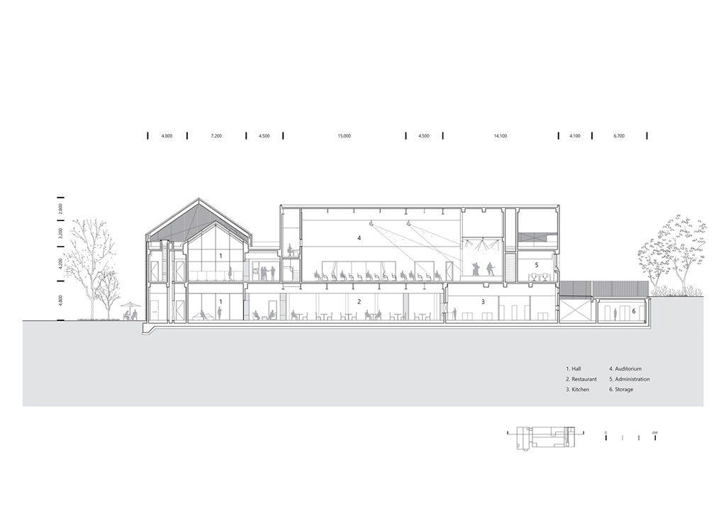 The S.A.L.T House’s incredible second floor spaces are the auditorium, make-up rooms, and the office spaces for the building administration. The auditorium is designed with a large column-free open hall making it a flexible space that can accommodate different events such as lectures or concerts. Whenever there are no events happening, curtains can be easily tucked to the sides to allow natural light to come in and also for visitors to have a glimpse of the beautiful landscape outside. During events, organizers and/or performers can prepare at their designated make-up rooms, and they also have different access to not encounter the rest of the visitors.