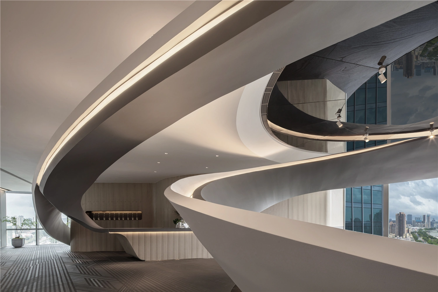 Taking inspiration from the undulating mountains and the rhythmic Qianshan River, this design utilizes dramatic, fluid forms to create a 360-degree, collaborative workspace that is as much a sculpture as it is a functional environment.