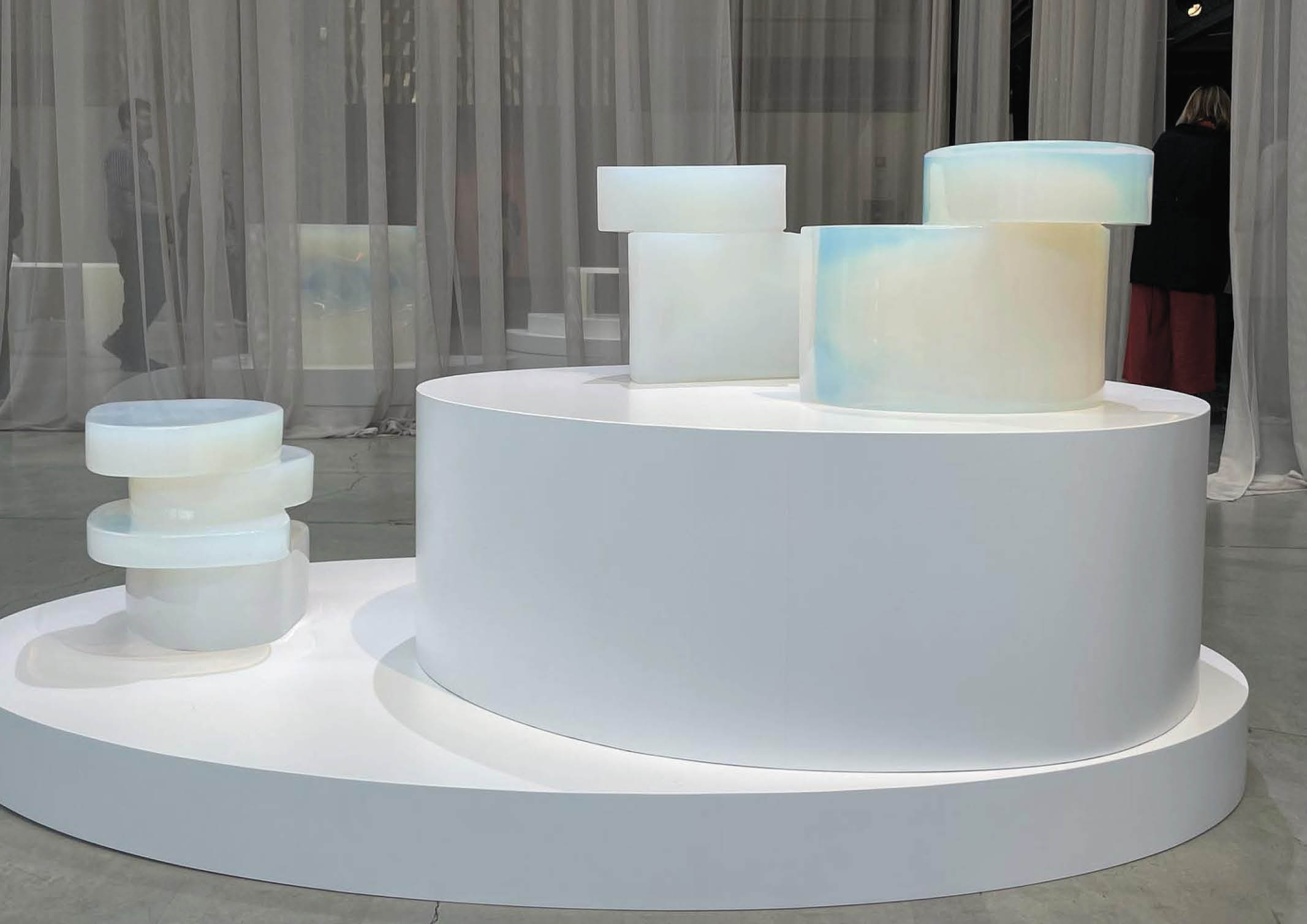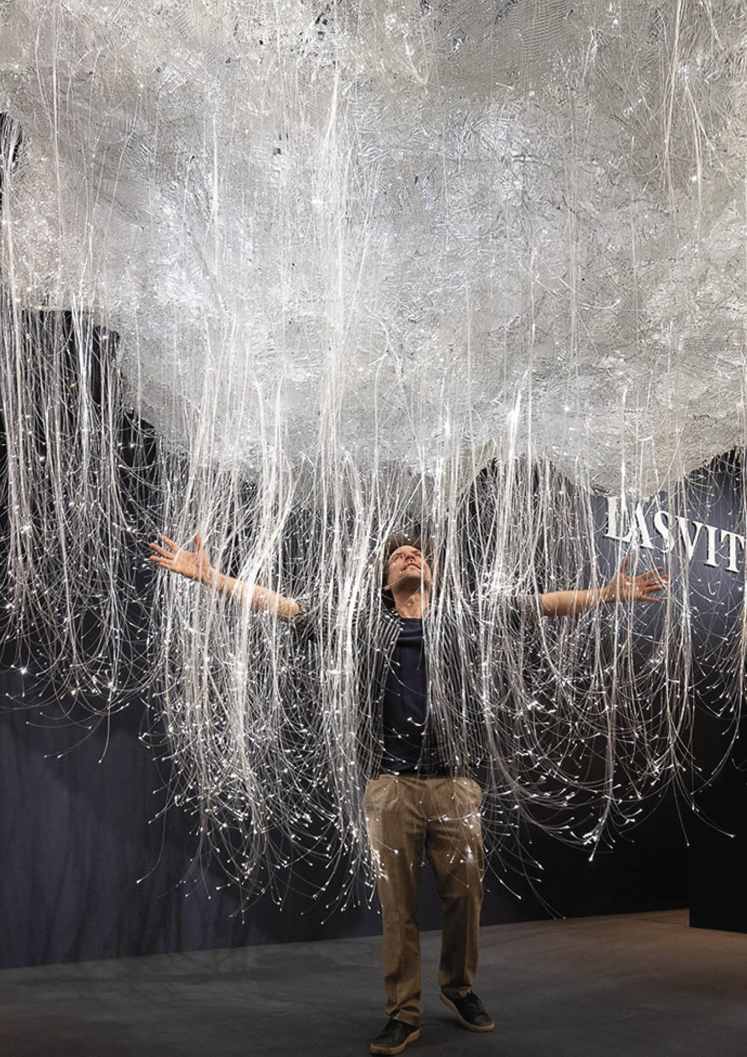 Imaginative Dreamscapes involves themes and treatments of iridescence, cloudlike appearances, floral-themed spaces, and opulent materials, that evoke feelings of lightness and surrealism. Examples under this trend include “Poikolos: New Forms of Iridescence” by Studio Vedét for Nilufar, “Cloud” by Maxim Velčovský for Lasvit, “The Secret Garden” by Bene and “Aria Infinita” by Zaha Hadid Design for Slamp.