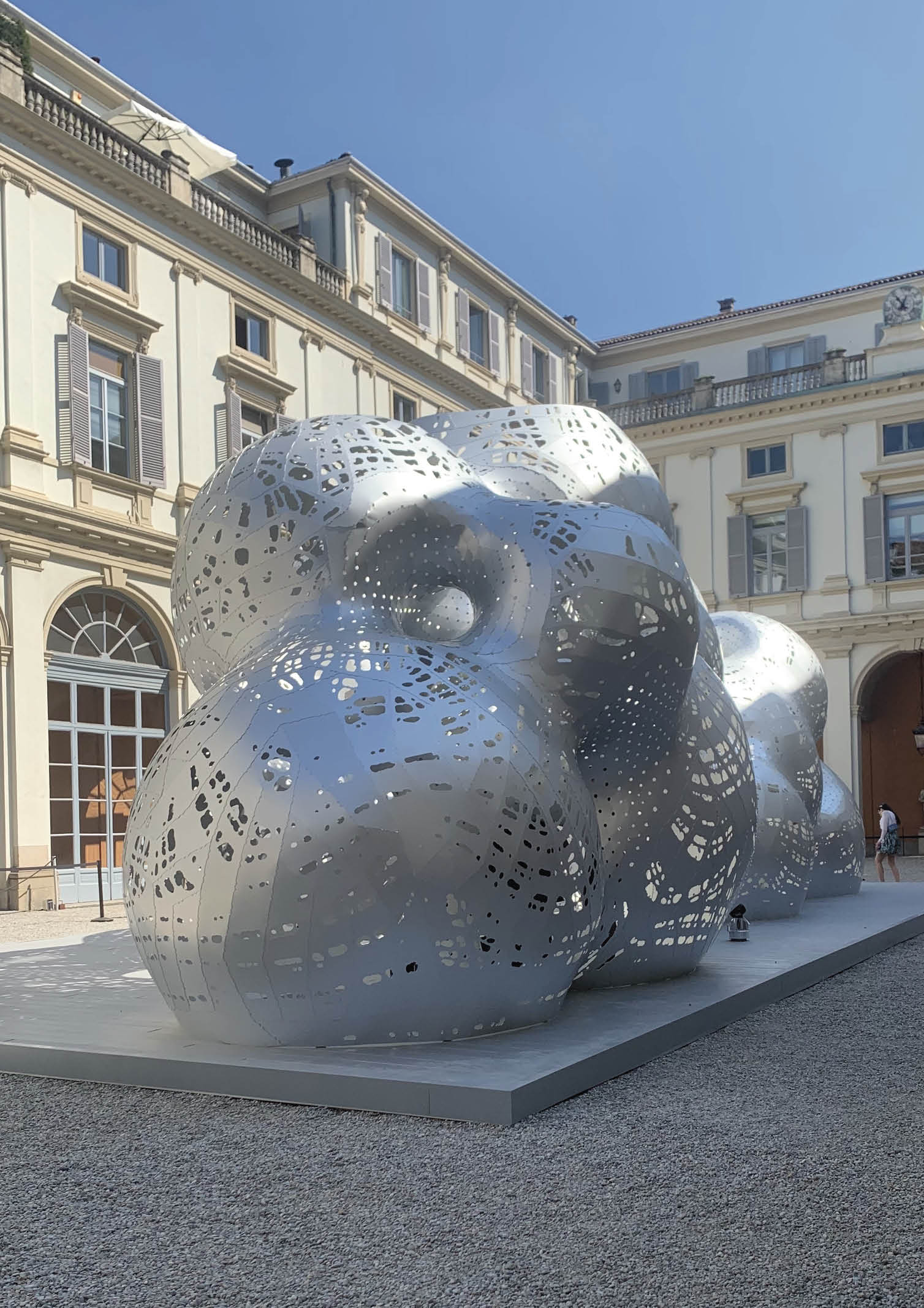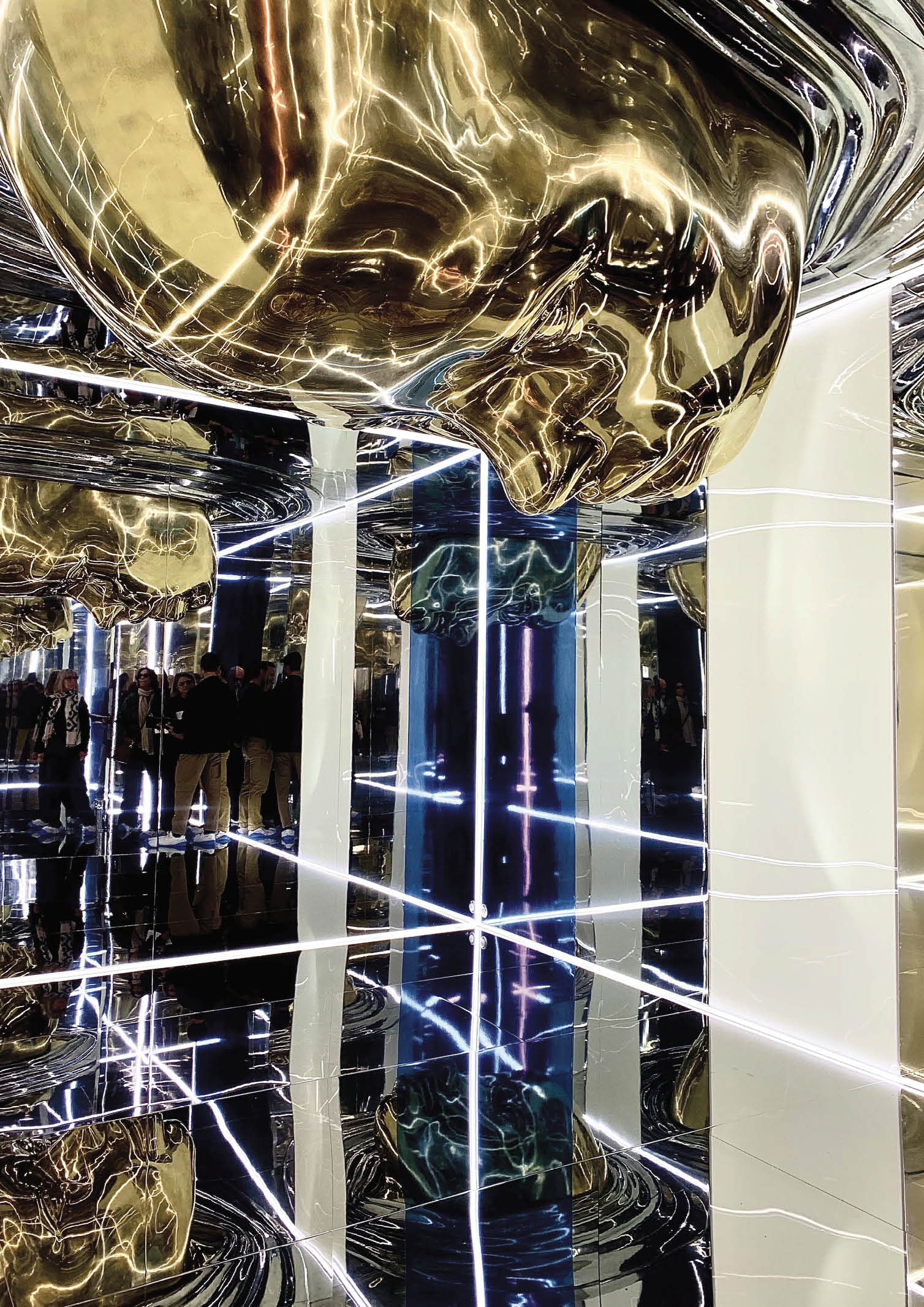 “Interna_Menta” by Materica exemplifies an Esoteric Journey as it debuts its first installation in Fuorisalone. A cold storage is transformed into a hall of mirrors with a metallic face peering down from the ceiling. While it is meant to showcase the brand’s business of transforming materials using an electric arc gun, they also intend to challenge people to look at their products and “feel” its deeper effects.