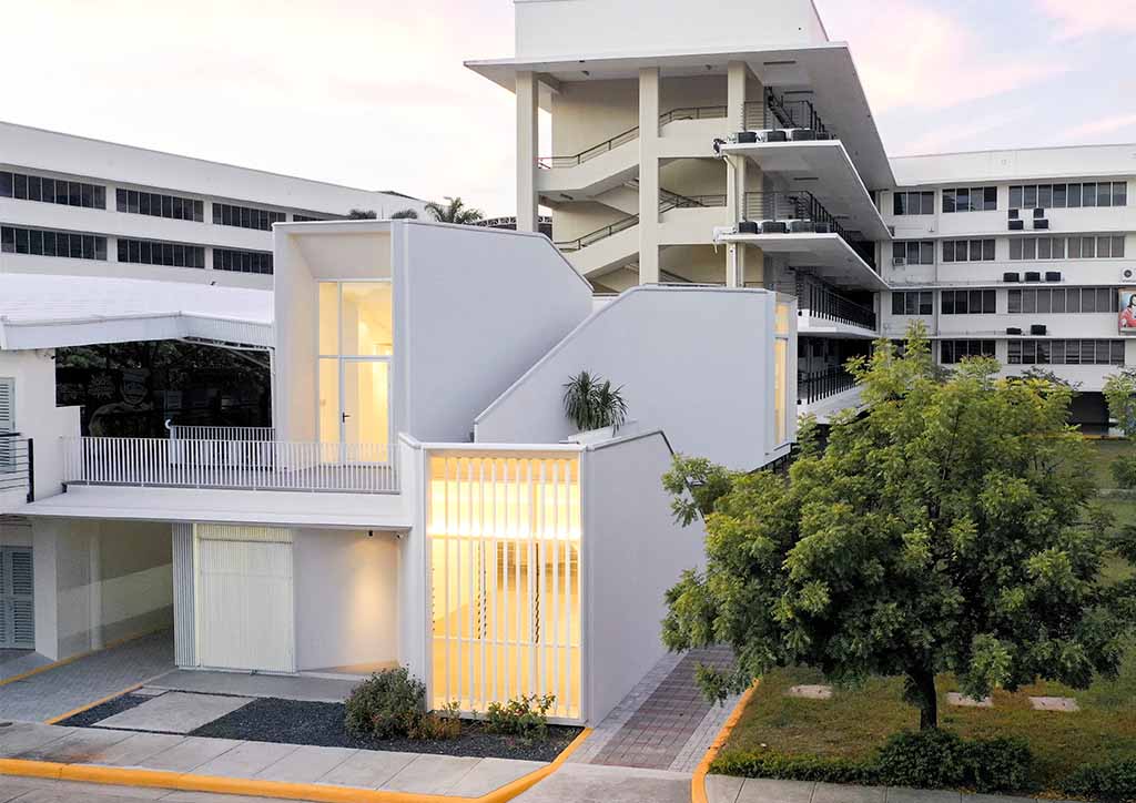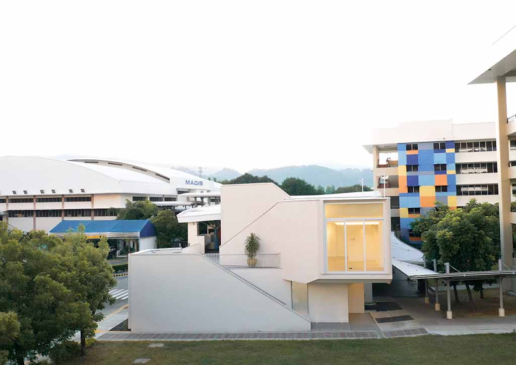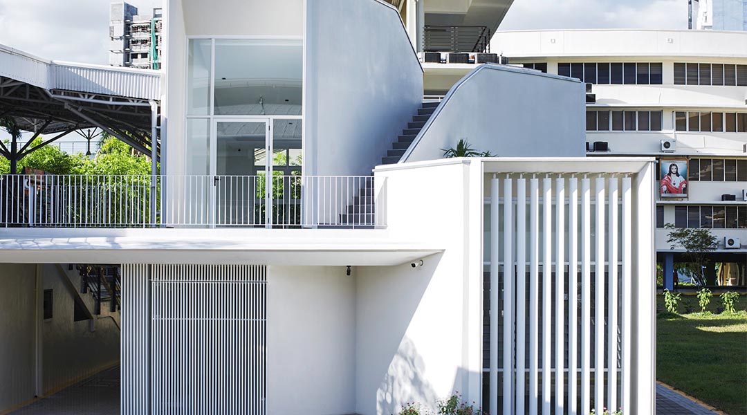As a modernist building, the façade bears clean white finished massing resembling the authenticity of the principles of the scouting movement. Taking inspiration from the scout oath – duty to God and country, the duty to others, and duty to self, every intricate curve and corner were carefully studied bringing out the ultimate purpose of the building. According to the architects, the building also defined the spaces inside it and created viewports from within the building towards the campus.