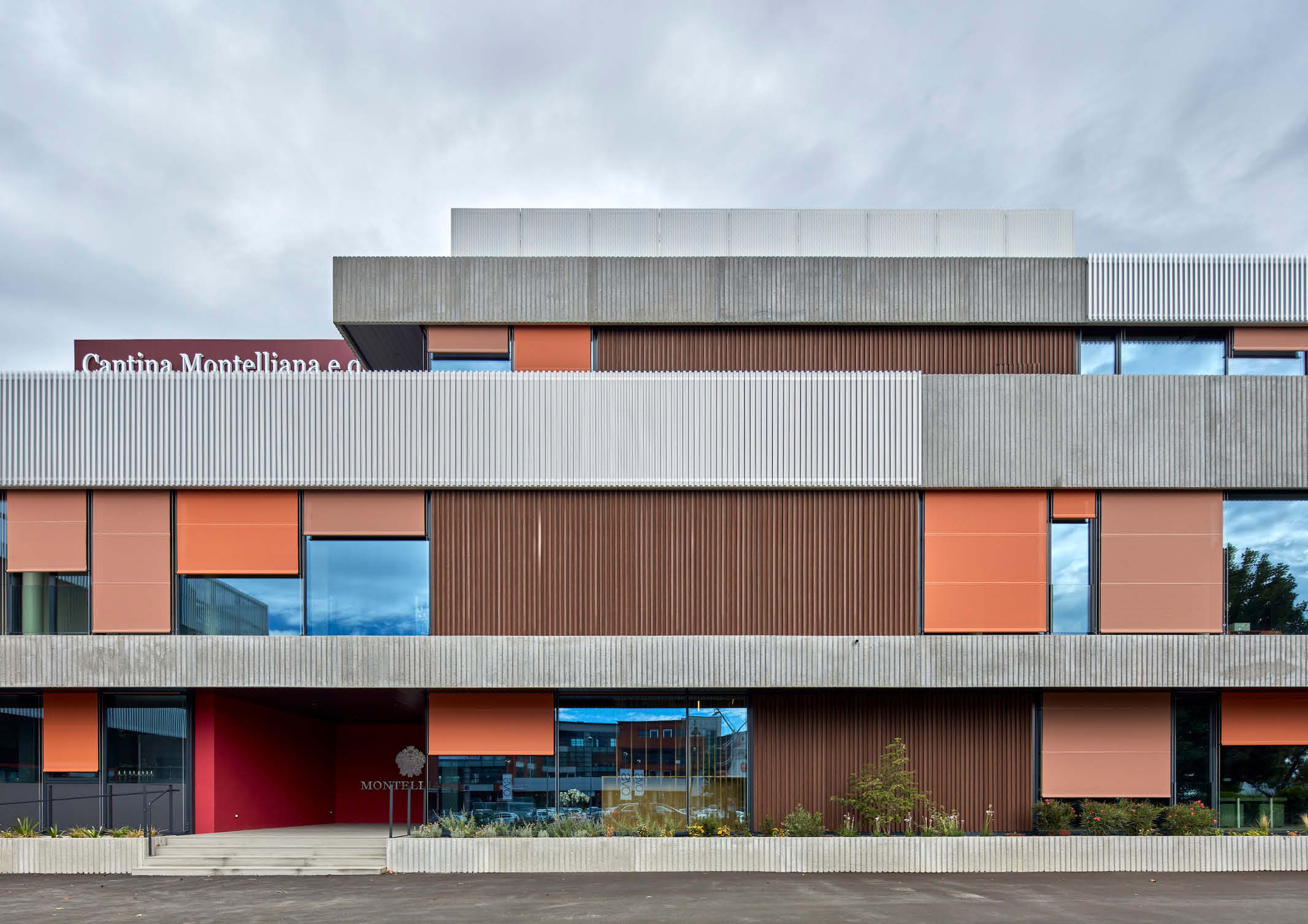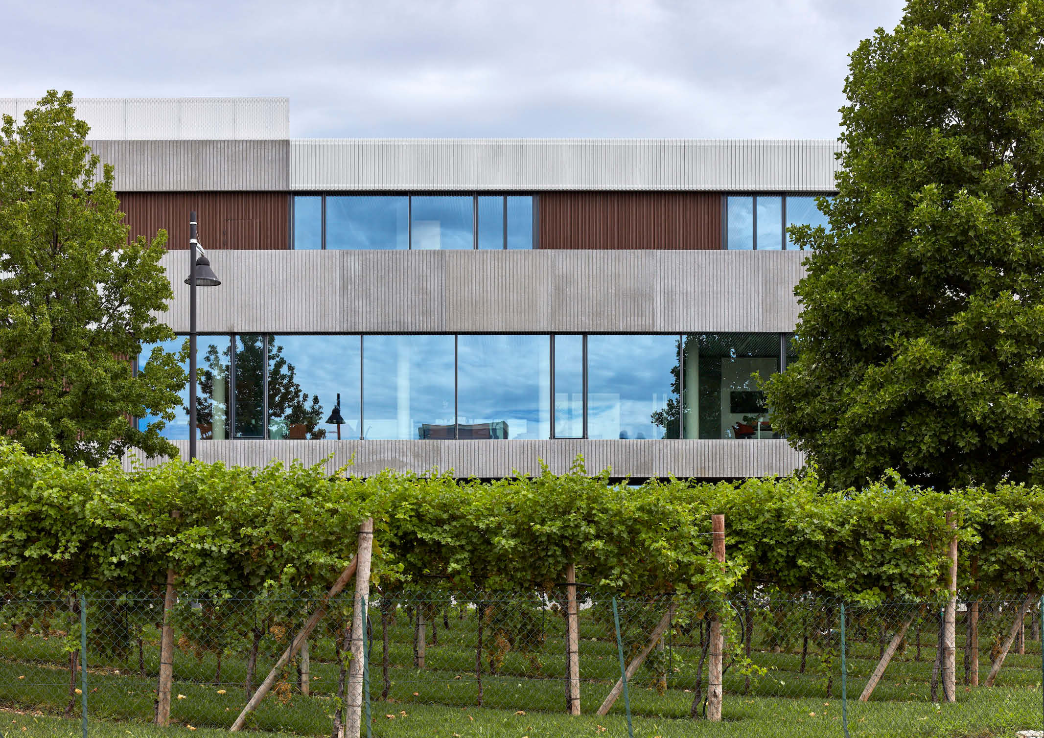 Tommaso Michieli and Christian Zanatta of michielizanatta.net architetti share that the project is in a manufacturing and commercial area dominated by low-quality buildings that are arranged along the road from Montebelluna to Conegliano, in the province of Treviso in northeastern Italy. The headquarters of the wine cooperative is located near the southern slopes of Montello and a few kilometers from the Piave River. It covers an area of about 10,000 square meters. The facility allows the company to have a structure of a size congruent with its current workforce.