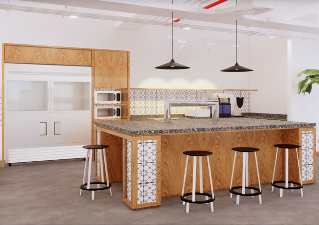 Milestone at 5th Avenue also pays homage to local architectural influences by incorporating local Machuca tiles characterized by intricate border motifs. The homage to local culture is further enhanced with unique Philippine rattan panels as freestanding cabinets. The panels also act as dividers for the community bar and the lounge, providing privacy for the community team and acting as counter space for events.