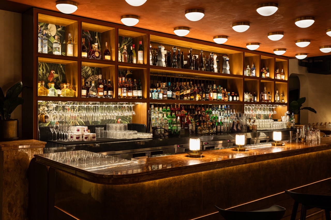 In the wine cellar, backlit shelves and soft lighting bring depth and warmth, transforming it into an intimate retreat. Similarly, the cigar room’s atmospheric lighting highlights its luxurious wooden textures. Sicangco’s expertise is particularly evident in the evening. The café transitions into a luminous haven with dimming controls and warm color temperatures that add a signature sparkle.