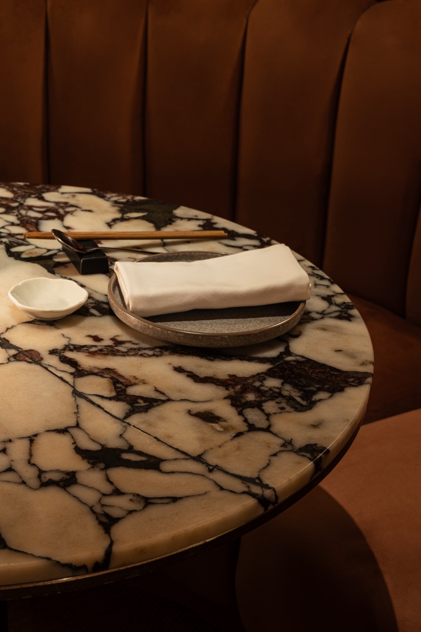 Ryan Cruz, CEO and Founder of the Nippon Hasha group, believes that materiality can express a restaurant’s values and personality. Each of his brands, including Kazunori, Mendokoro, Yushoken, and Marudori, reflects a distinct character. He likens Kazunori to the “mom” of the group, while Marudori, Yushoken, and Mendokoro are the “kids.” Yushoken and Mendokoro are twins in format but differ in service style.