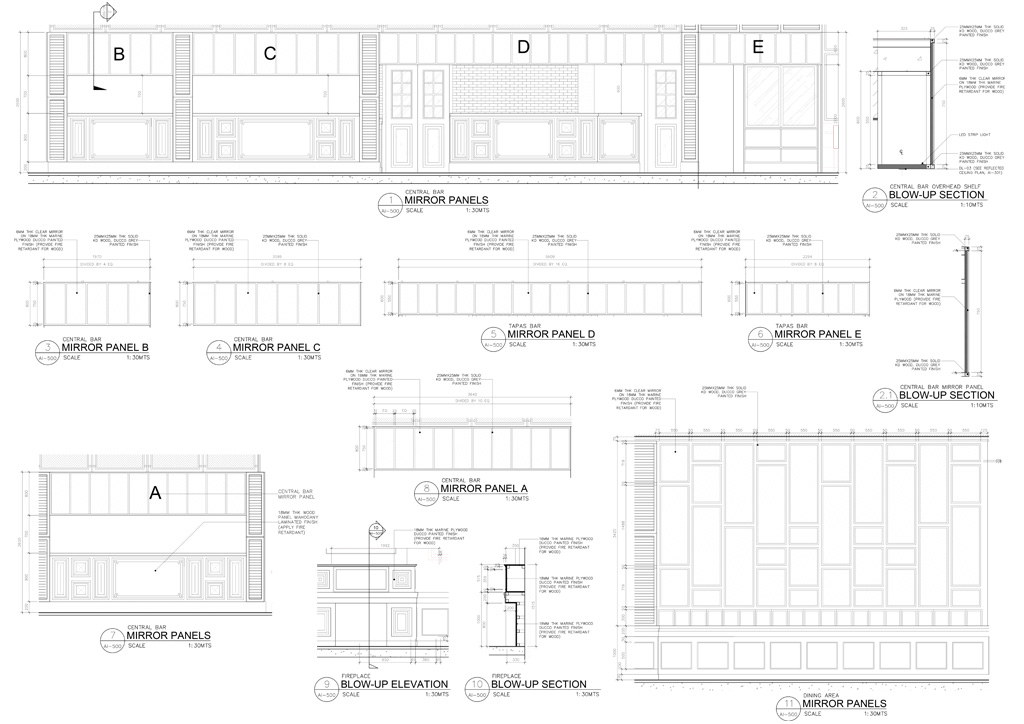 The unique element of the design is that the interior was meant for wear. The more signs of usage, the better the textures come out, such as the floor scratches of the mahogany wood floor. The detail on wall and ceiling molding was given careful attention, every corner, nook, and cranny was treated as a feature wall.