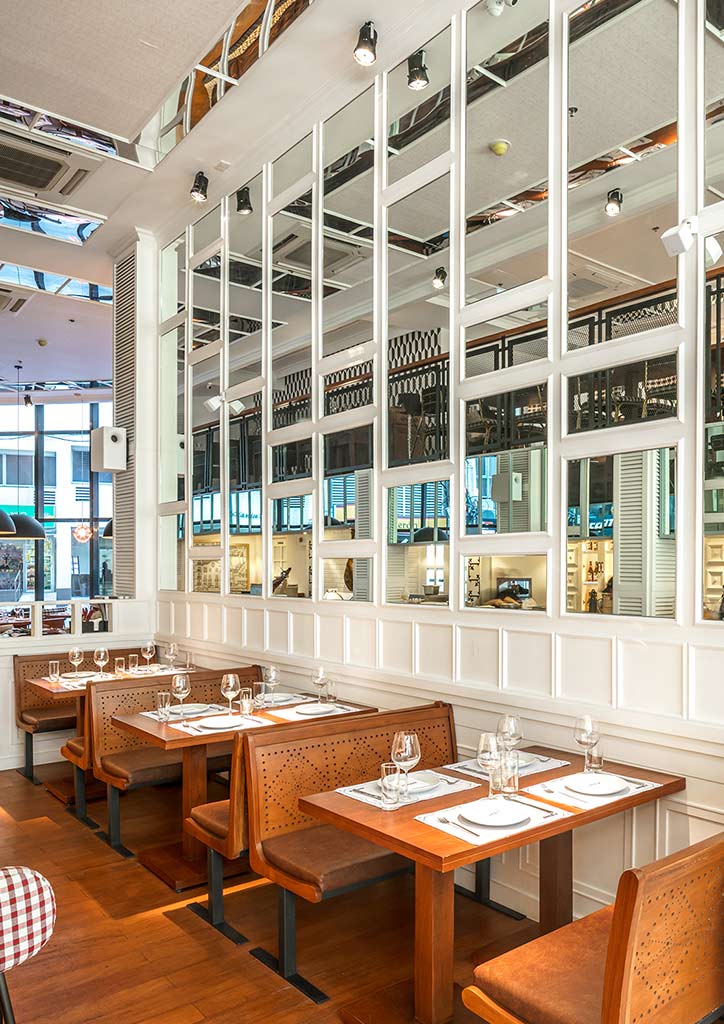 The interior was inspired by the previous Bistronomia stores, characterized by strong detail, texture, and a feeling of luxury. The design approach was simple. The owners are confident that the good quality and taste of their food is mirrored through the striking and elegant architectural interiors of the new Rambla.