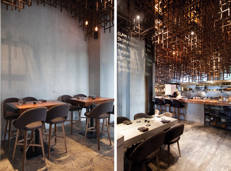 Yulo reveals he chose to go with rust—not just the color of rust, but actual rust—justifying it as raw, unrefined and natural—like an uncut gem, like the young chef. Rusty steel looks like wood, Yulo adds, which is not incompatible with Japanese.