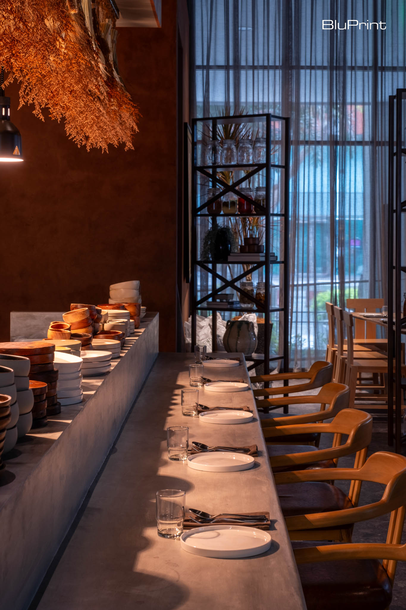 One of the most striking elements of the design is its use of materials. “A lot of it is grounded on being honest,” Ver explained. He prioritized natural finishes throughout the restaurant, from the tables and chairs to the walls. The raw textures and organic finishes offer diners a sense of comfort and warmth—elements that make the space feel both intimate and personal.