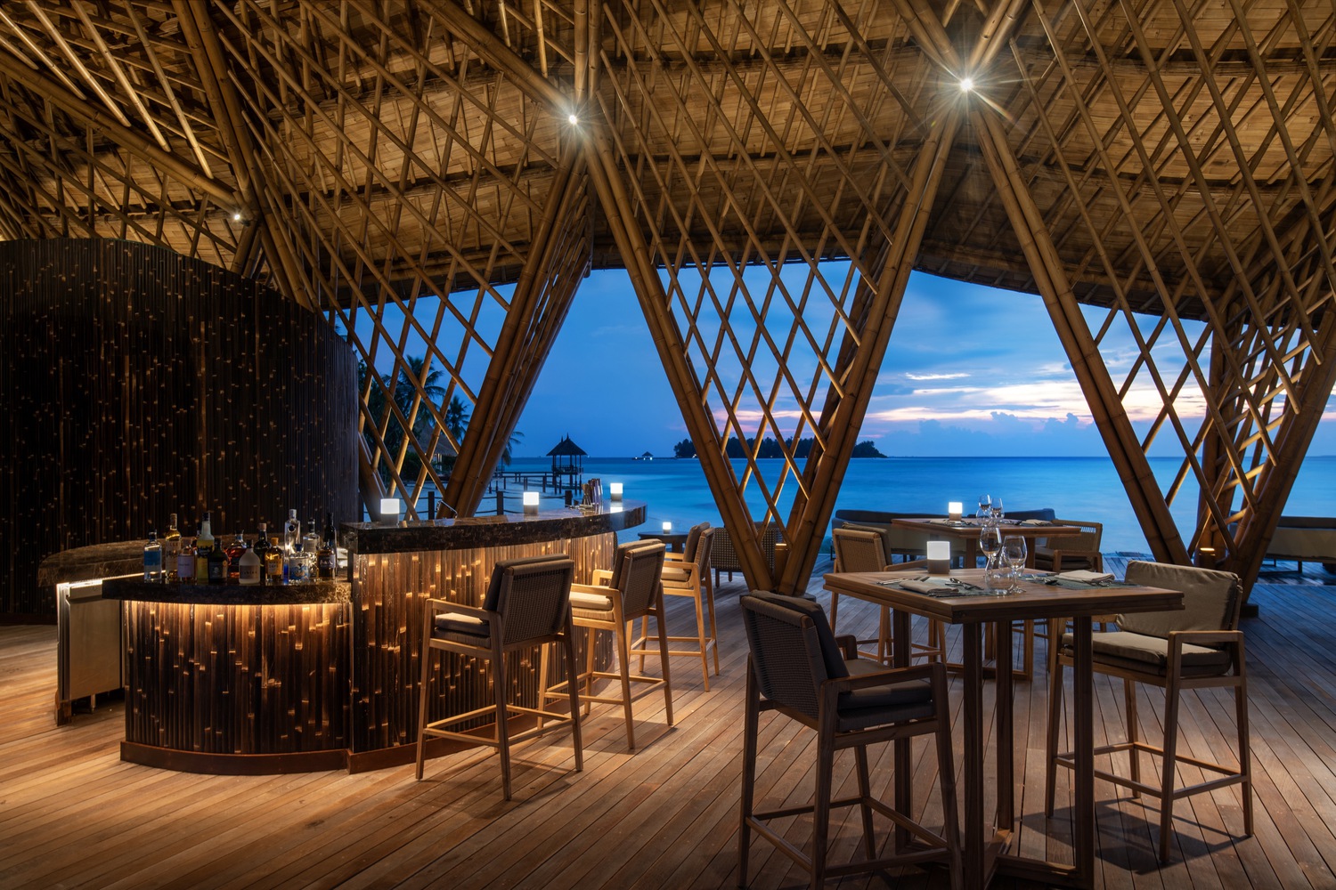 The team of Atelier Nomadic went above and beyond in designing this restaurant that infuses vernacular form and materiality into a luxury setting. Guests can experience the best of the Maldivian seascape through its Pink Whipray inspired form, use of bamboo species, and assimilation into the lagoon. Its awareness and careful treatment of its environment can serve as a benchmark for developments in tropical areas.