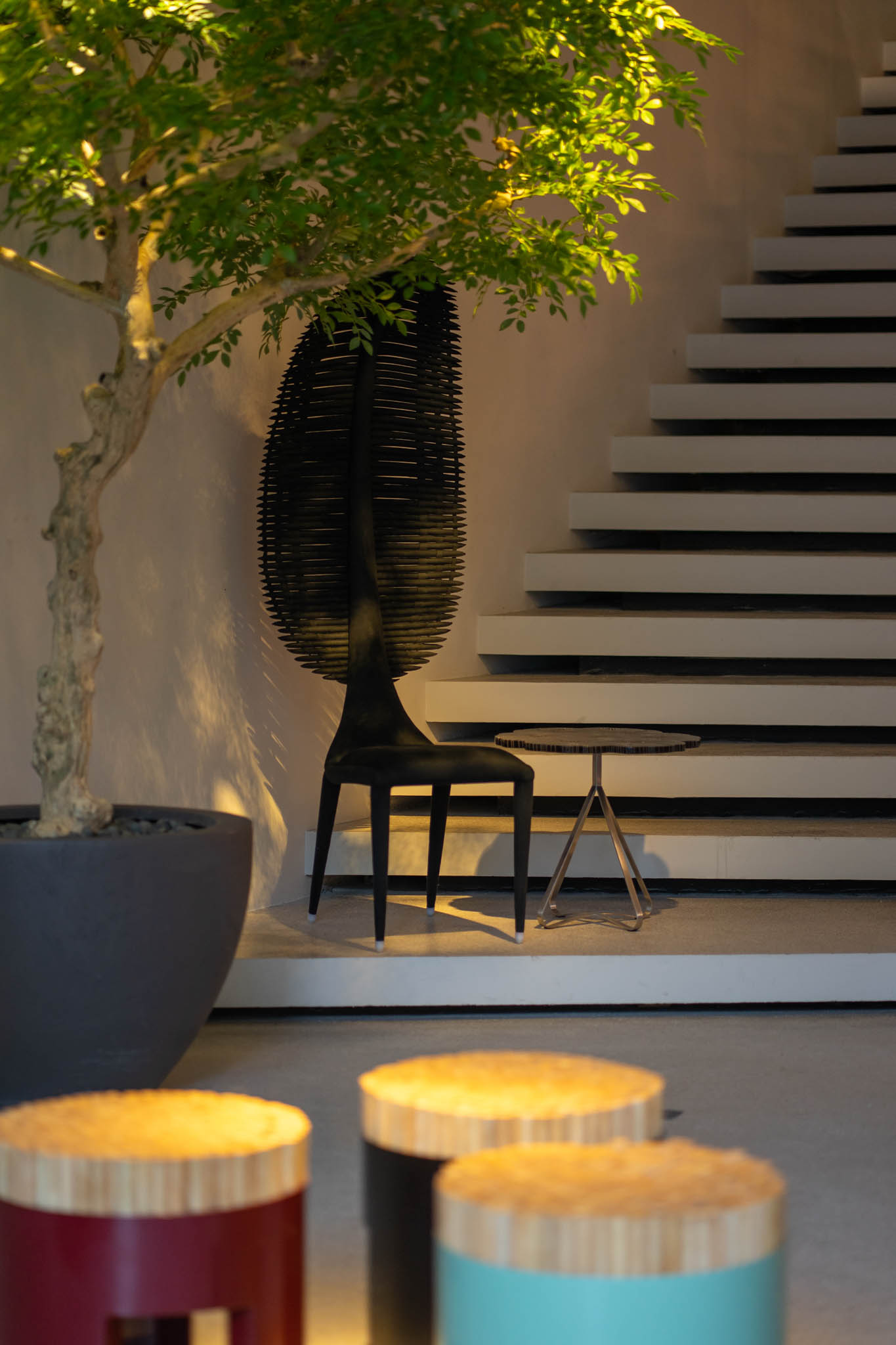 Stepping into the showroom is akin to walking through a living timeline of Cobonpue’s creative journey. Here, his iconic pieces from the past years that first captured the world’s attention with their organic forms and masterful weaving, stand alongside his latest explorations.