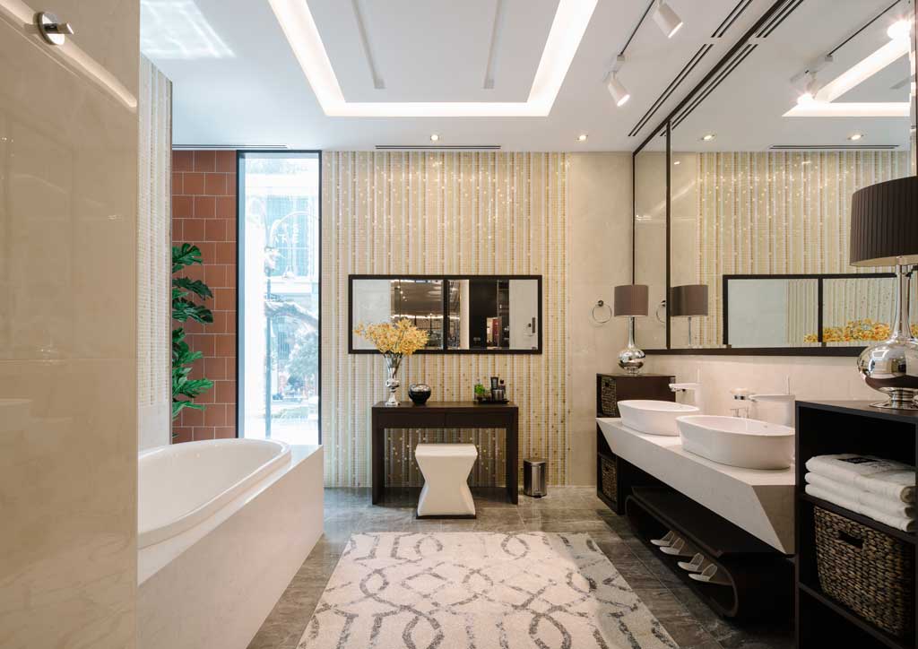 The newest GROHE Spa flagship store in Singapore wastes no time in showing off its superlatives: it occupies two storeys of prime commercial space in the iconic Orchard Road, with over 550 square meters of retail space, and 400 of the company’s products on display and use. The store’s piece de resistance can be said to be the painstakingly reconstructed replicas of six five-star hotel bathrooms around the world outfitted with GROHE fixtures.