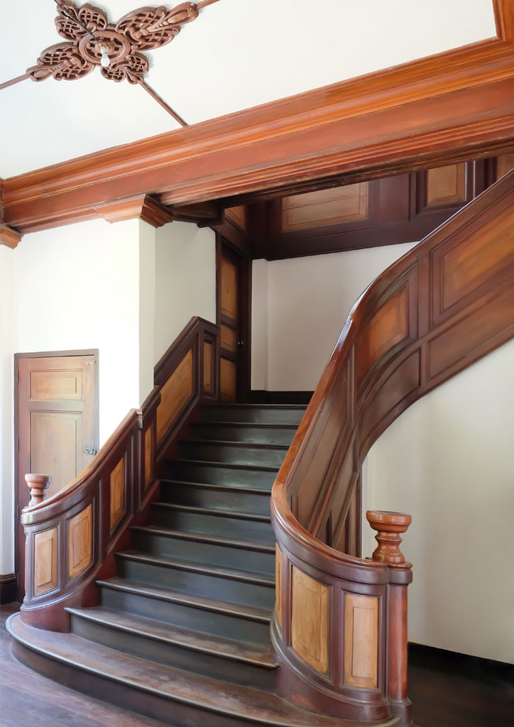 Built in 1926, the Molo Mansion is defined by its American Colonial architecture with Neoclassical and subtle Art Deco features. From the gate, visitors are dropped off at the roundabout with a fountain at the center, and led up to the semi-circular arcaded portico with a terraced veranda on the ground floor and a balcony on the second floor.