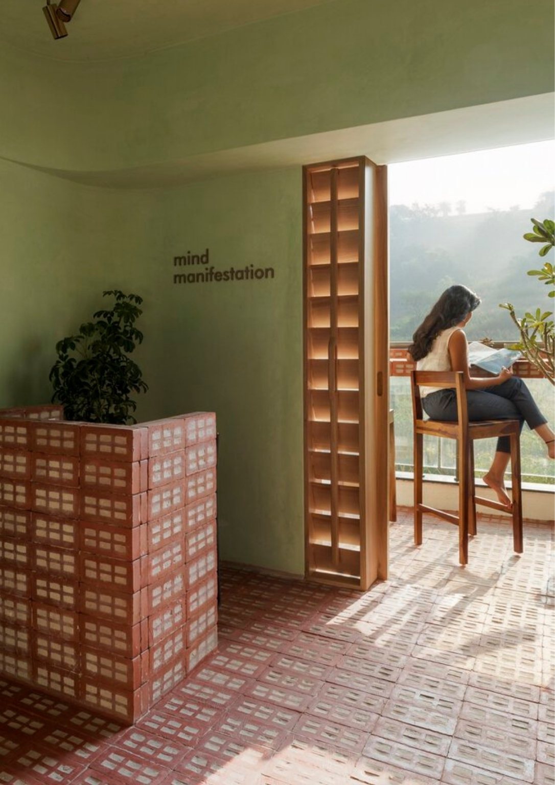 Design firm Mind Manifestation builds its office overlooking the hills in Pune, India. Aptly called Studio by the Hill, the 120-square-meter office pontificates perforated bricks and lime washed walls. The design adapts to the local climate and artfully reflects the surrounding environment. The studio transforms the apartment intending to represent their principles while innovating materials that respond to the native context and conditions.