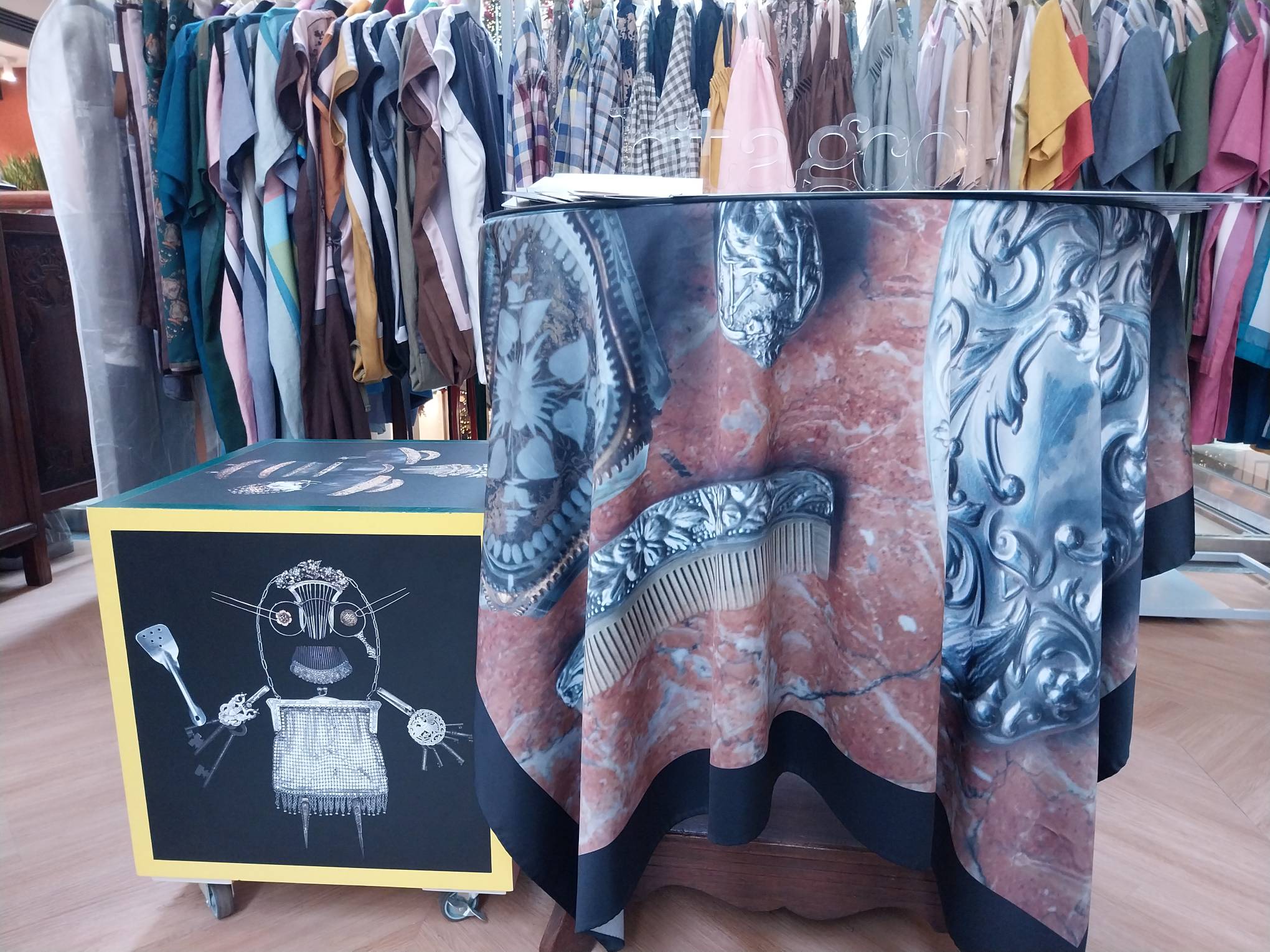 The pop-up store was named re-start due to its function as an introduction to the Bitagcol brand to the broader public. The store features the iconic shirts and scarves the brand is well-known for, as well as more of the dresses and other garments that their steady customers request.