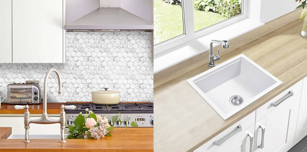For a quick and easy sustainable upgrade in your kitchen area, install backsplashes for added style and protection. Backsplashes provide high-quality protection for your kitchen walls from grease stains, water spots, and keep pests from infiltrating your walls. Picasso Mosaic tiles are made from 95% recycled glass, water, and scratch-resistance for high durability, making them ideal for an eco-friendly kitchen space.