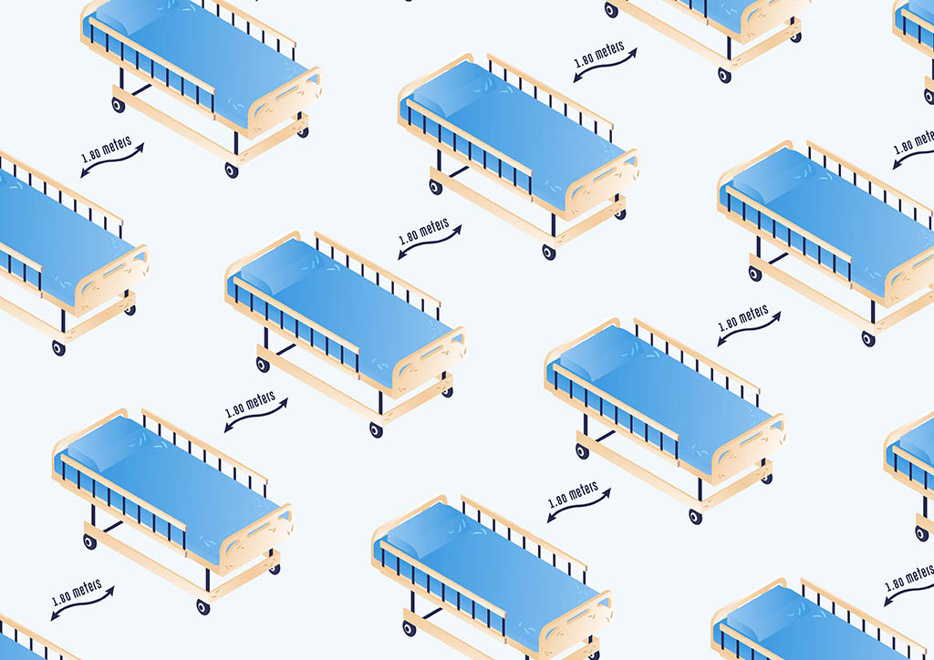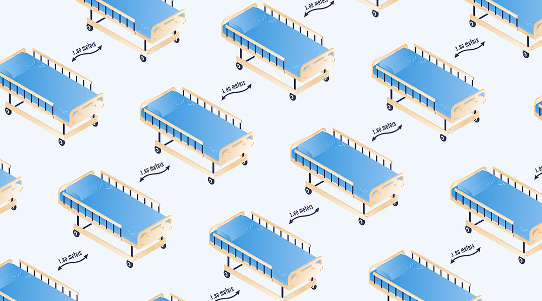 Transmission occurs within 1-2 meters, which means a “bed should be 2.5 meters on center or further. Panel segregation is preferred for privacy and prevention of the droplets from going to the next cubicle” says Lichauco. The DOH epidemiologist’s recommended bed arrangement in COVID-19 quarantine hospitals is as follows: