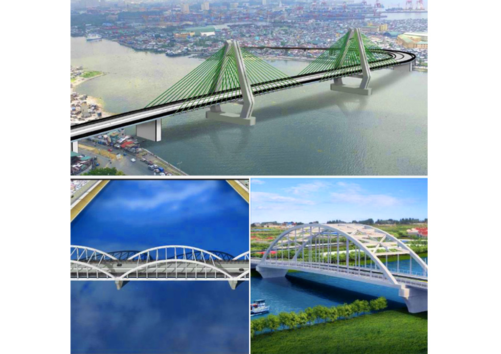 Top: North & South Harbor Bridge, Left: Eastbank-Westbank Bridge 2, Right: Palanca-Villegas Bridge (Photos courtesy of the Chinese Embassy)