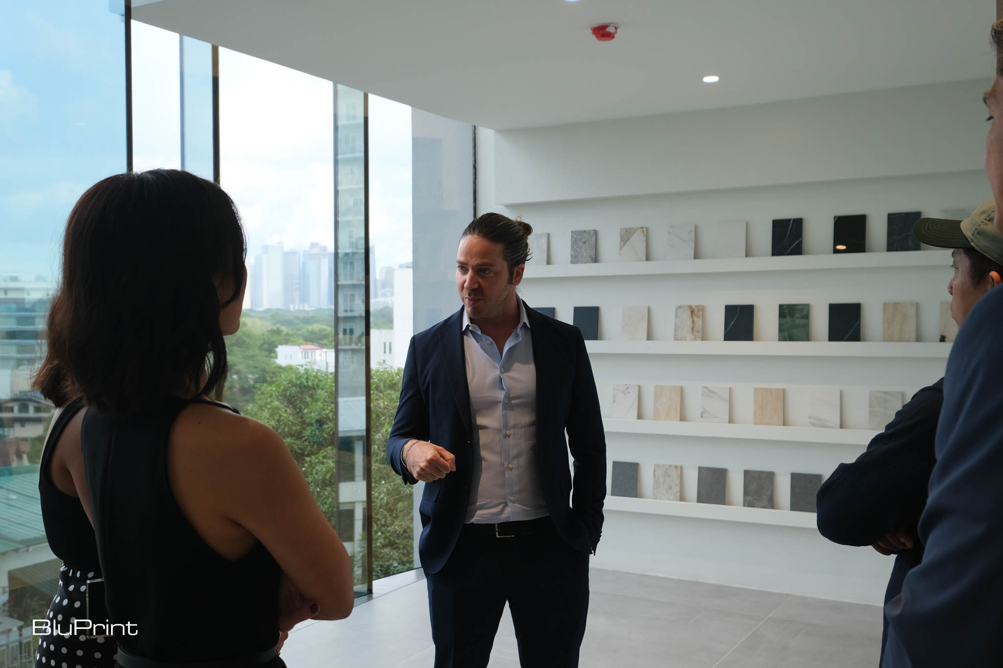 Tile Gallery President Kenneth Hing followed with an inspiring speech, reflecting on the journey to create this unique space. He acknowledged the partnerships with renowned brands like Olivari, Meridiani, and Atlas Concorde, all committed to craftsmanship and design innovation. Hing emphasized that The Tile Gallery offers the essential elements to transform spaces into personalized stories.