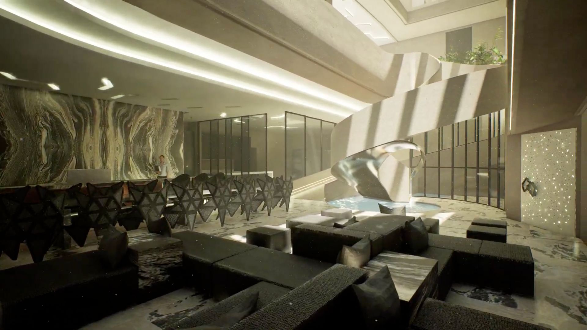 The integration of natural materials, dynamic forms, and immersive storytelling reflects Calma’s ability to create spaces that are both forward-thinking and rooted in heritage.