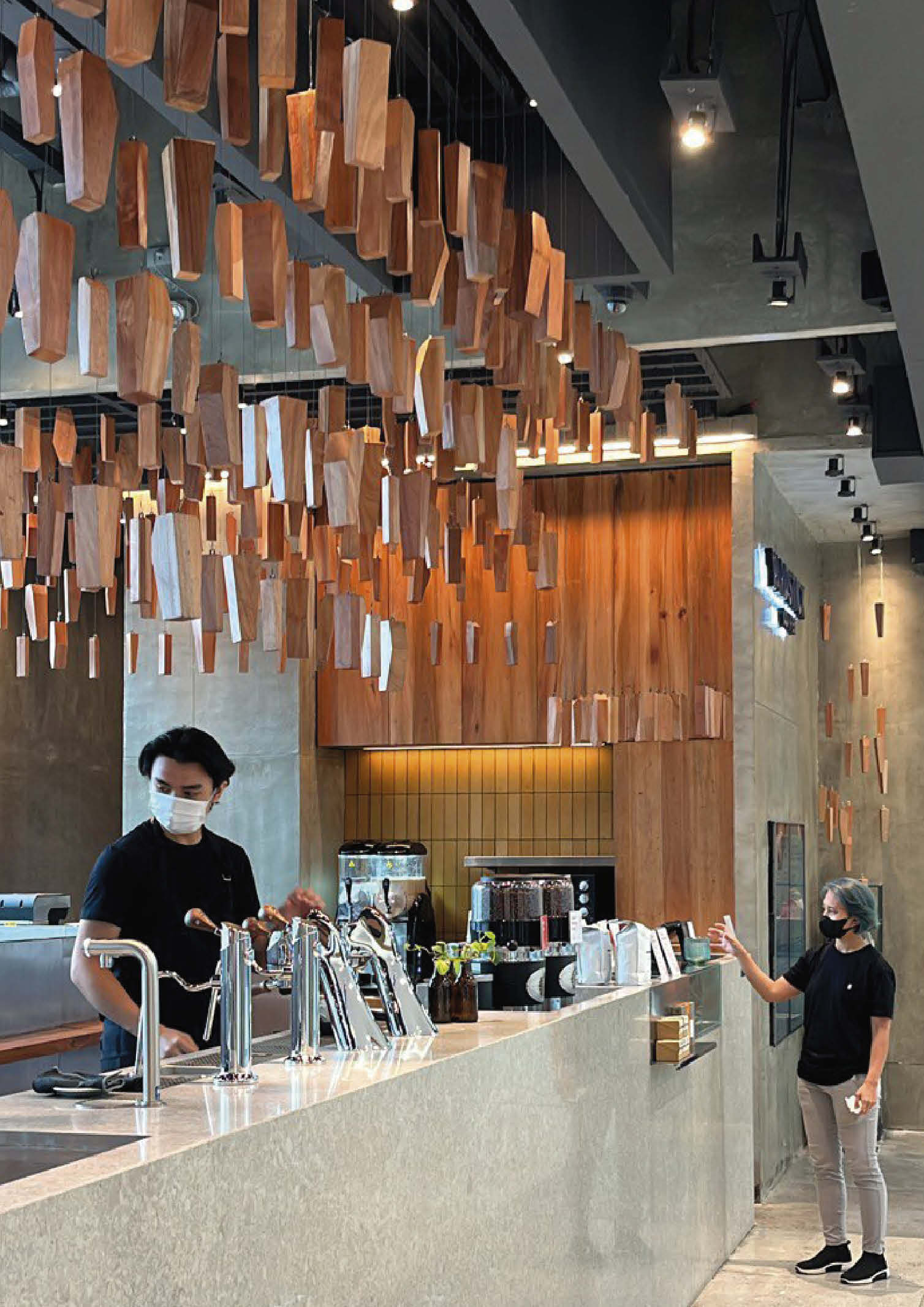 He also explains that coffee spaces have been conduits for different communities to thrive. That’s why they designed a space for Yardstick Coffee in MOA Square which aims to move towards more accessible coffee spaces and experiences. “This yearning for accessibility was translated into the materiality of the space by using retaso wood: offcut pieces of materials that are typically deemed unusable,” Serrano explains.